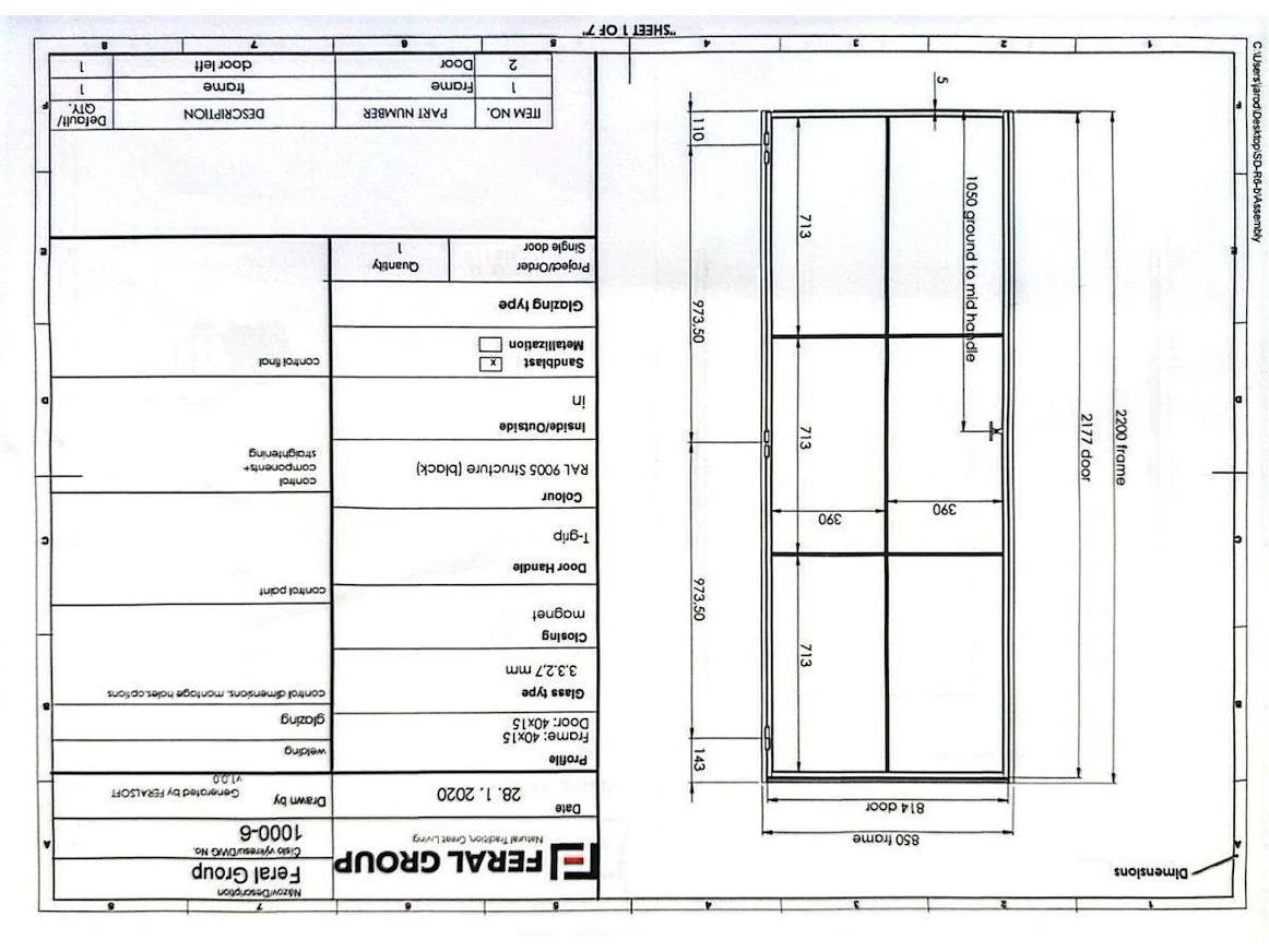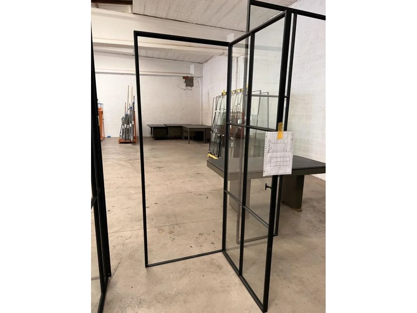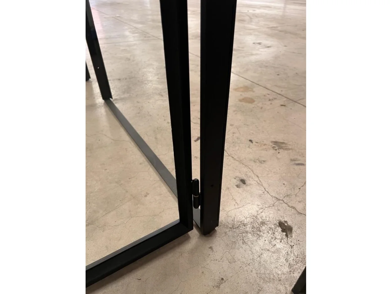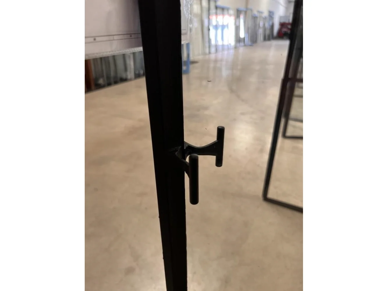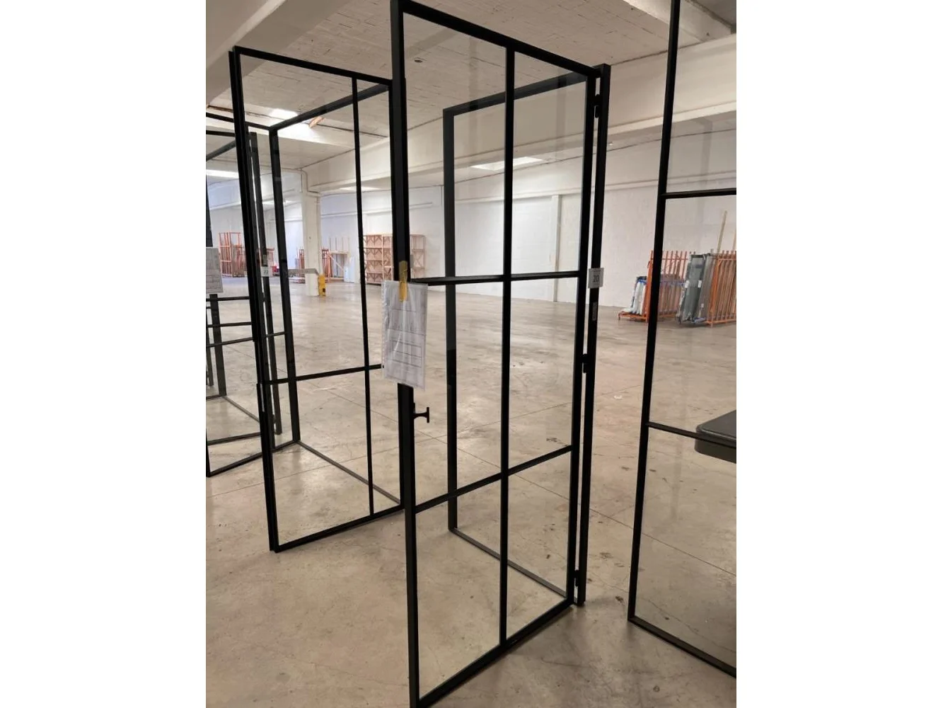 Stalen buitendeur opgebouwd in thermisch onderbroken Janisol Profielen Voorzien van een 3 puntsluiting en valdorpel Beglazing 4/16/33.1 met U waarde 1.0 Gezandstraald en gepoederlakt RAL 9005 zwart Artisanaal afgemastikeerd aan 2 zijden HXB:2070x815mm Verkoopprijs 3750€