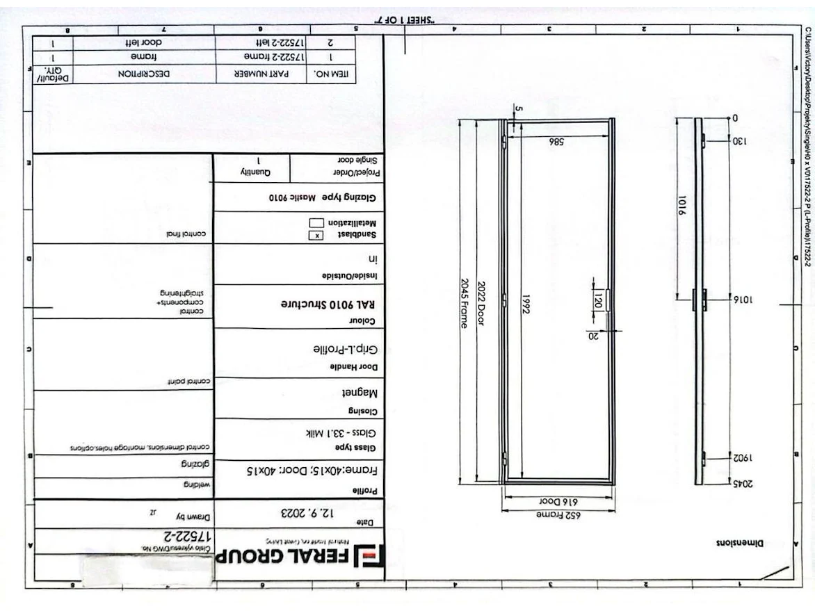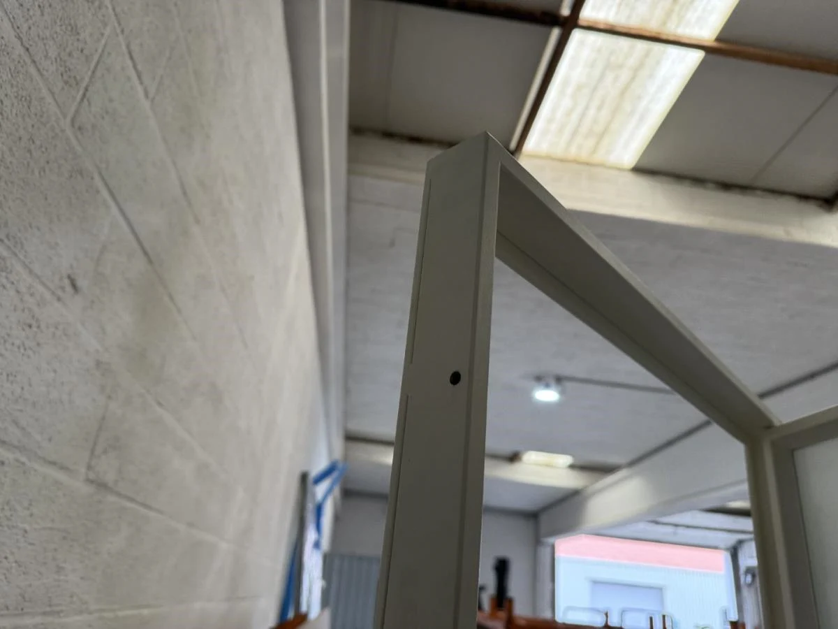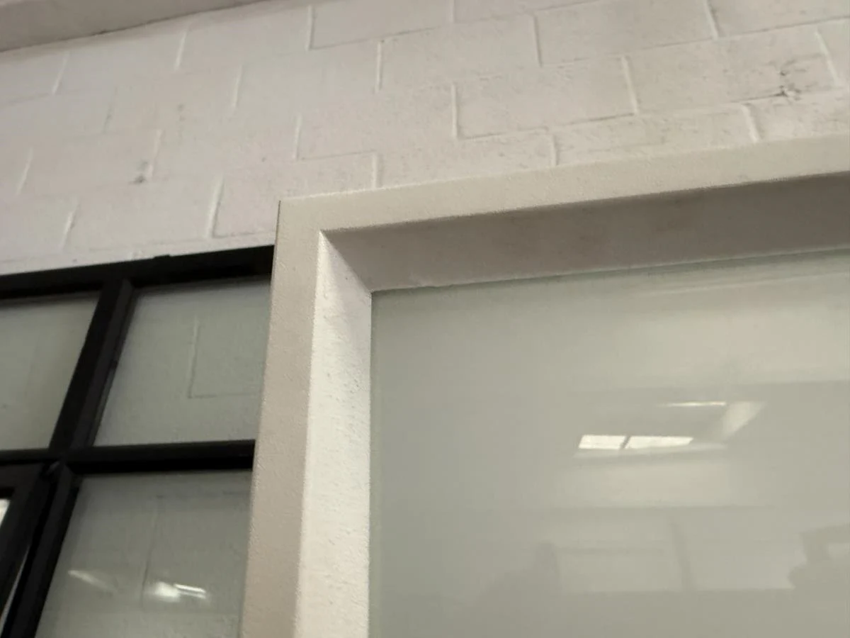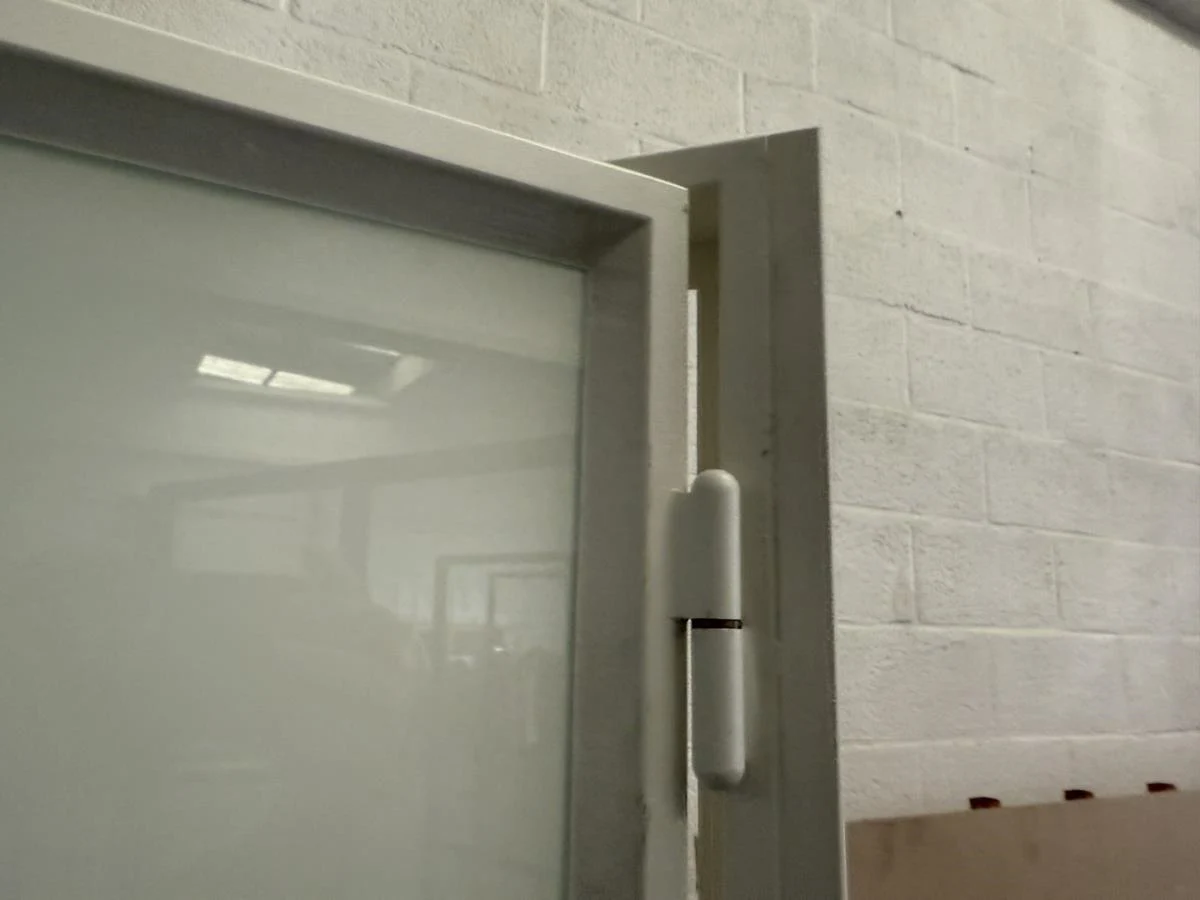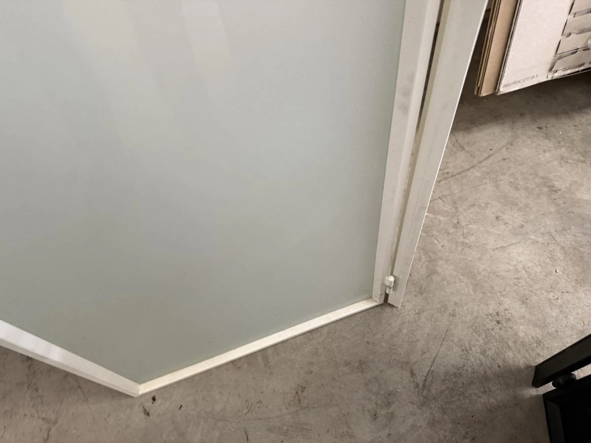 Stalen binnendeur Opgebouwd uit kokerprofielen 40 x 15mm Veiligheidsbeglazing opaal Gezandstraald en gepoederlakt RAL 9010wit Artisanaal afgemastikeerd aan 2 zijden HXB:2040x650mm Verkoopprijs 1950€