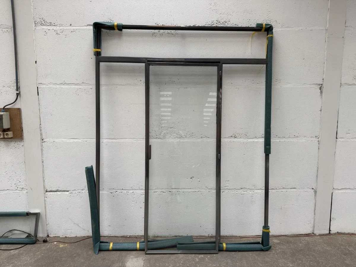 Stalen binnendeur met 2 vaste panelen . B 1840x H2360 mm. DEUR: 760mm. Zilver - Dit exemplaar is te bewonderen op afspraak bij hammertime: Pauwelsdreef 23, 2940 HOEVENEN