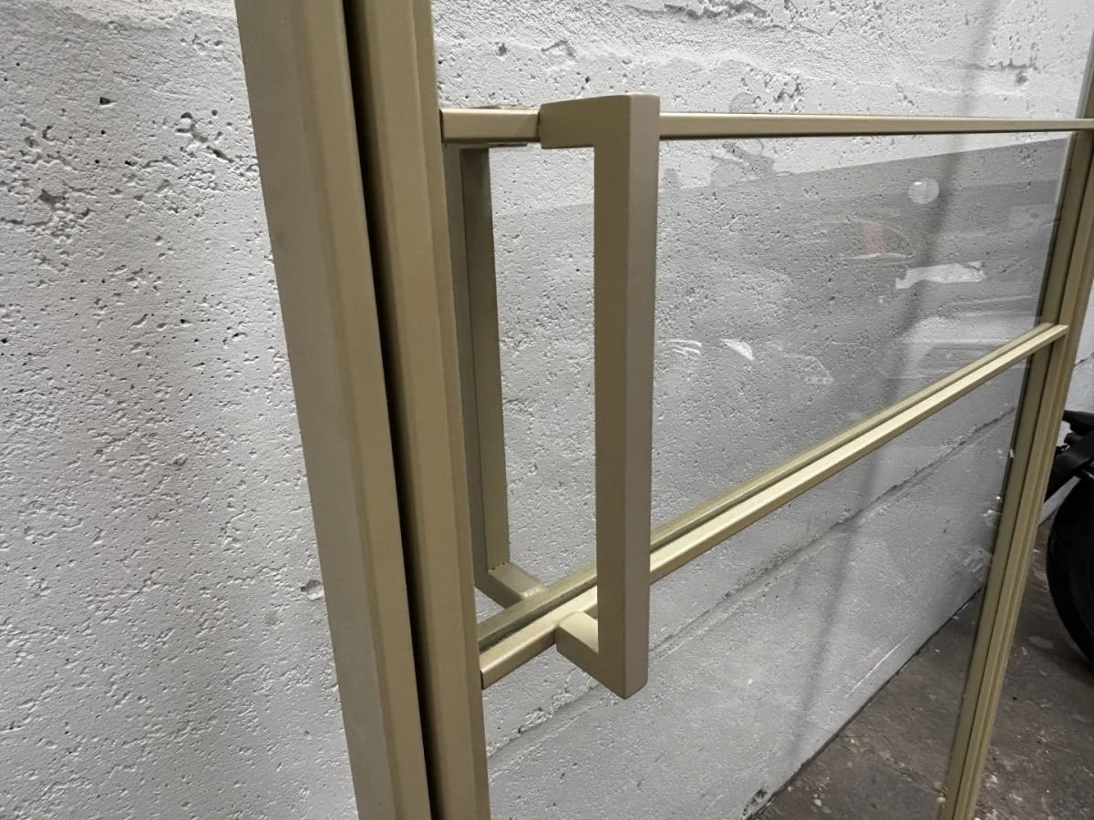Stalen binnendeur, 3 onderverdelingen . B 890 x H2130 mm. Goud - Dit exemplaar is te bewonderen op afspraak bij hammertime: Pauwelsdreef 23, 2940 HOEVENEN