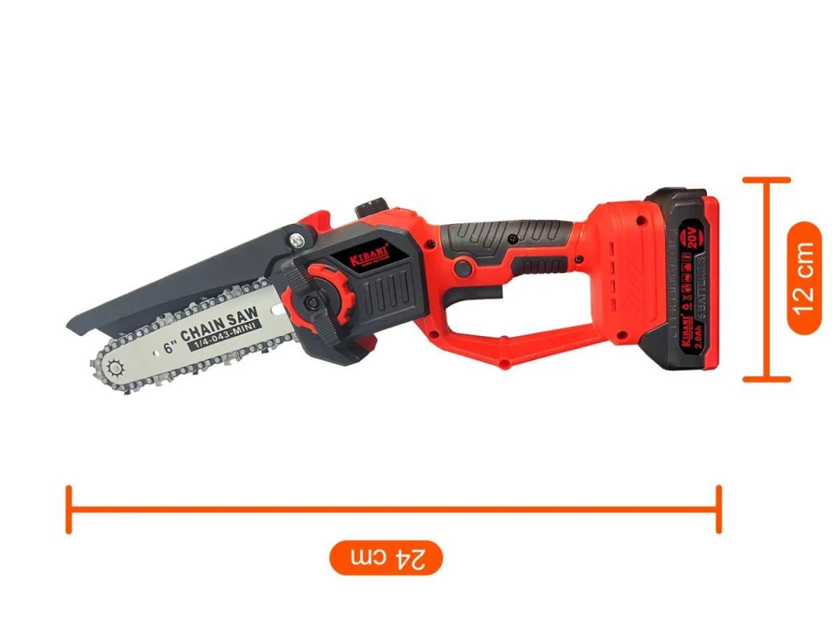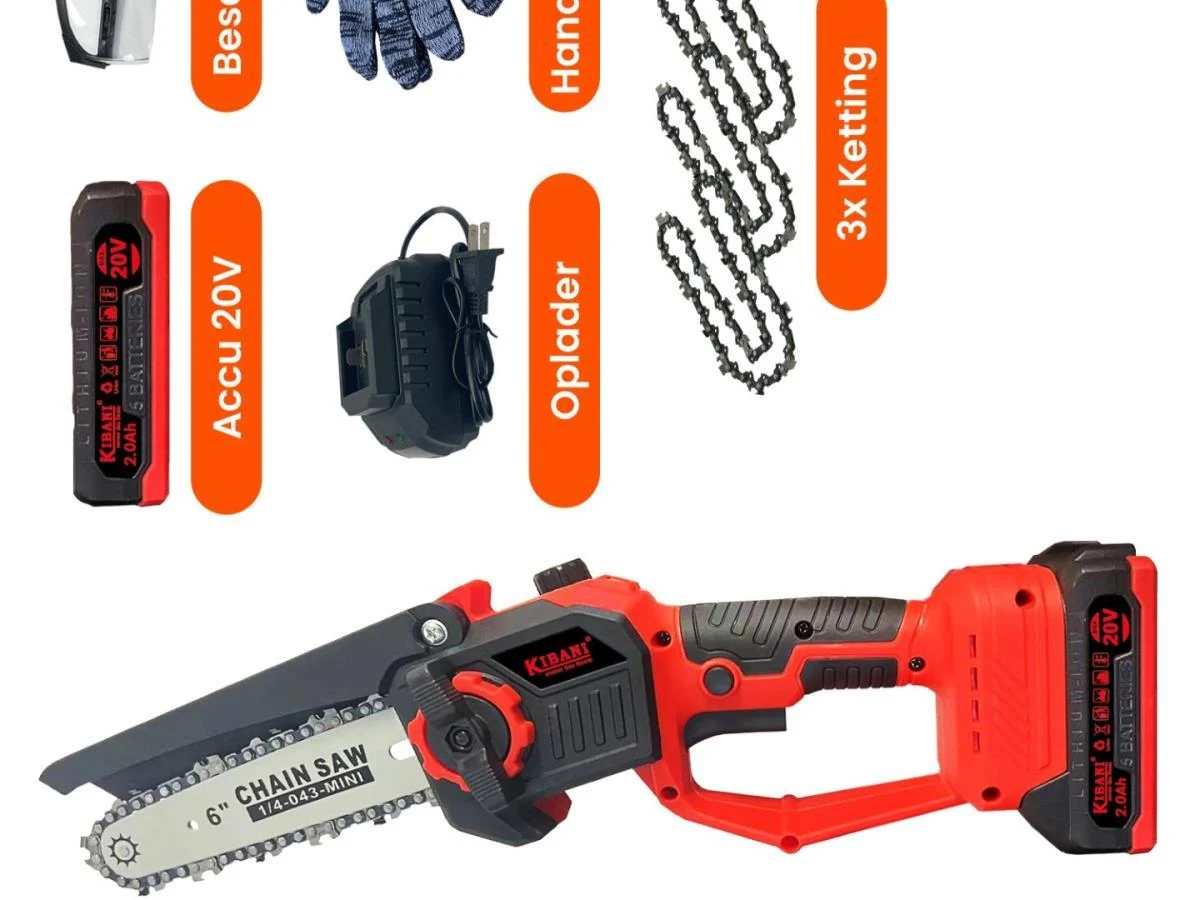 Kibani Accu Takkenzaag - Elektrische Zaag - Draadloos - Inclusief Accesoires - Mini Kettingzaag - 15 cm - Met Opbergkoffer, Omvang (B x H): 12cm x 24cm Display: Ja Meegeleverde accu: Ja Zaag snelheid: 8 M/s Verstelbaar: Ja