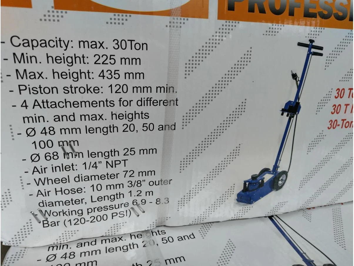 Proffesionele werkplaatskrik 30 ton Pneumatisch aan gedreven hydraulische pomp. Nieuw in doos