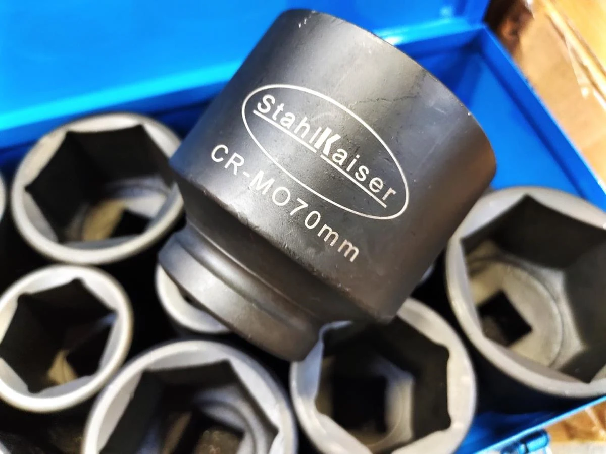 Zeer hoge kwaliteits krachtdoppenset met 25 maten van 17mm tot maar liefst 75mm, lengte 80 en 88mm, zeskant doppen 1"aansluiting, nieuw in metalen koffer