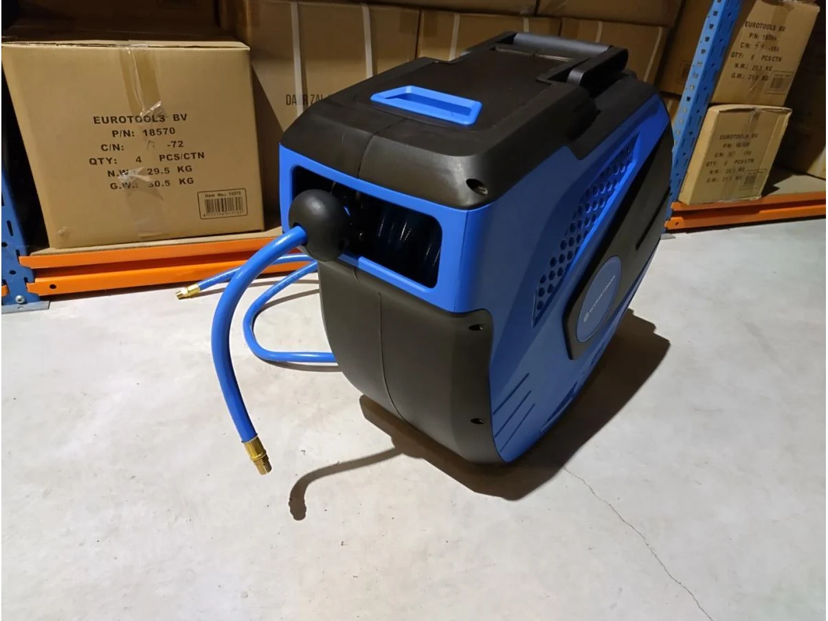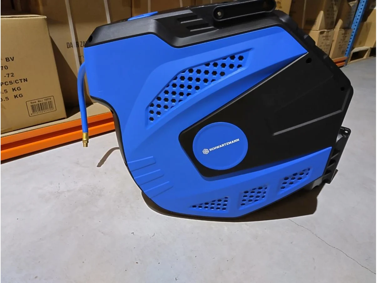 Schwartzmann automatische luchtslanghaspel met aut afslag en terugloopfunctie. Nieuw in doos