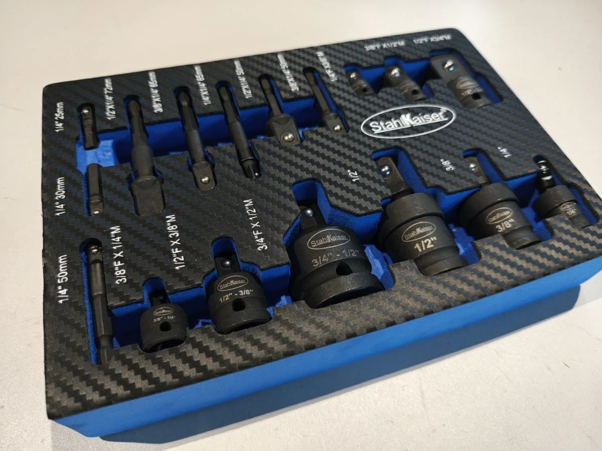 17 delige Kracht adadpterset met kogelgewricht, Chroom Molybdeen, 1/4"3/8"1/2"