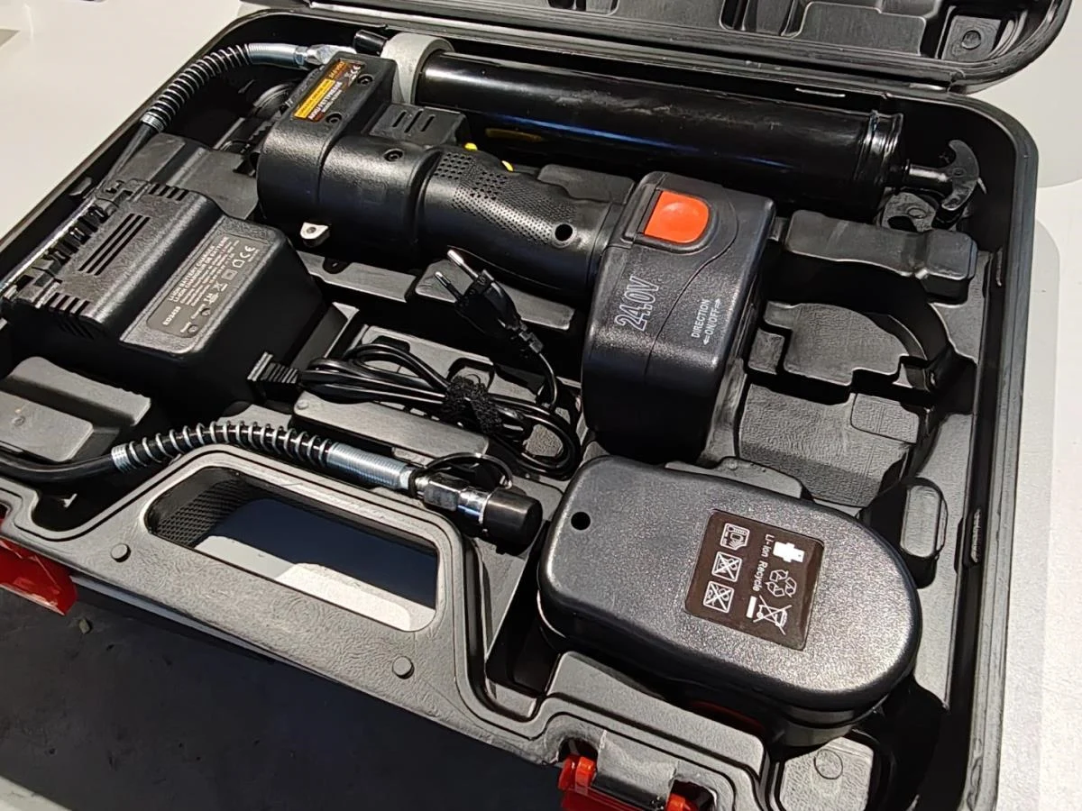 24 volt met 2 accus en lader, krachtige vetspuit en handig in gebruik, ongebruikt