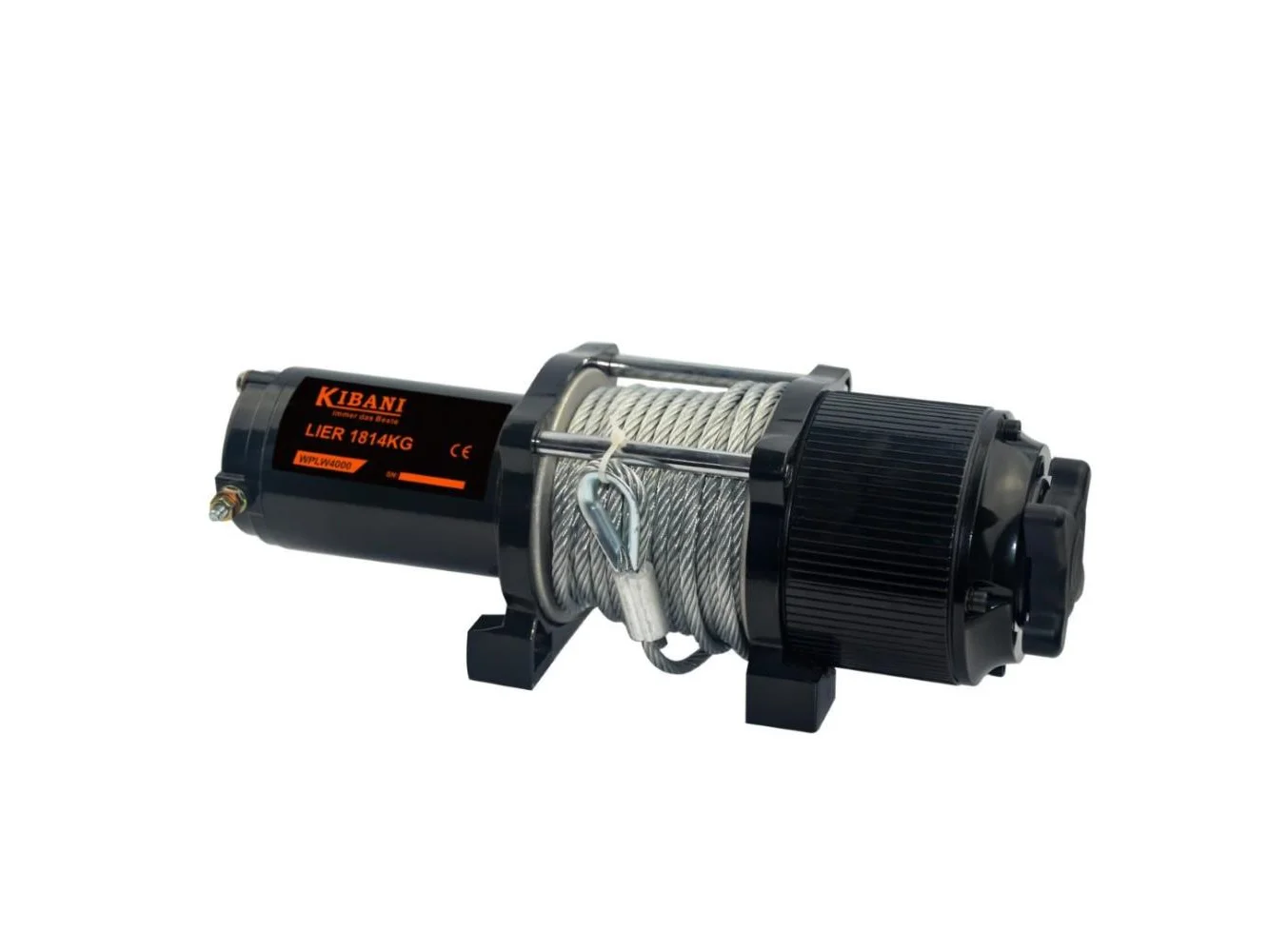 Elektrische lier 12 volt 1814kg, Gewicht 14 kg, Afmetingen 35.4 × 11.7 × 12.3 cm Aandrijving elektrisch, Voedingsspanning 12 V, Vermogen 0.9 kW, verbrengingsverhouding 128.2:1, Diameter Kabel 6 mm, Trekkracht 1814kg (4000lbs), Onbelaste kabelsnelheid 6.7 m/min, Max. belaste kabelsnelheid 1.7 m/min, Lengte Kabel 13.5 meter, Keurmerken CE, Model WPLW4000