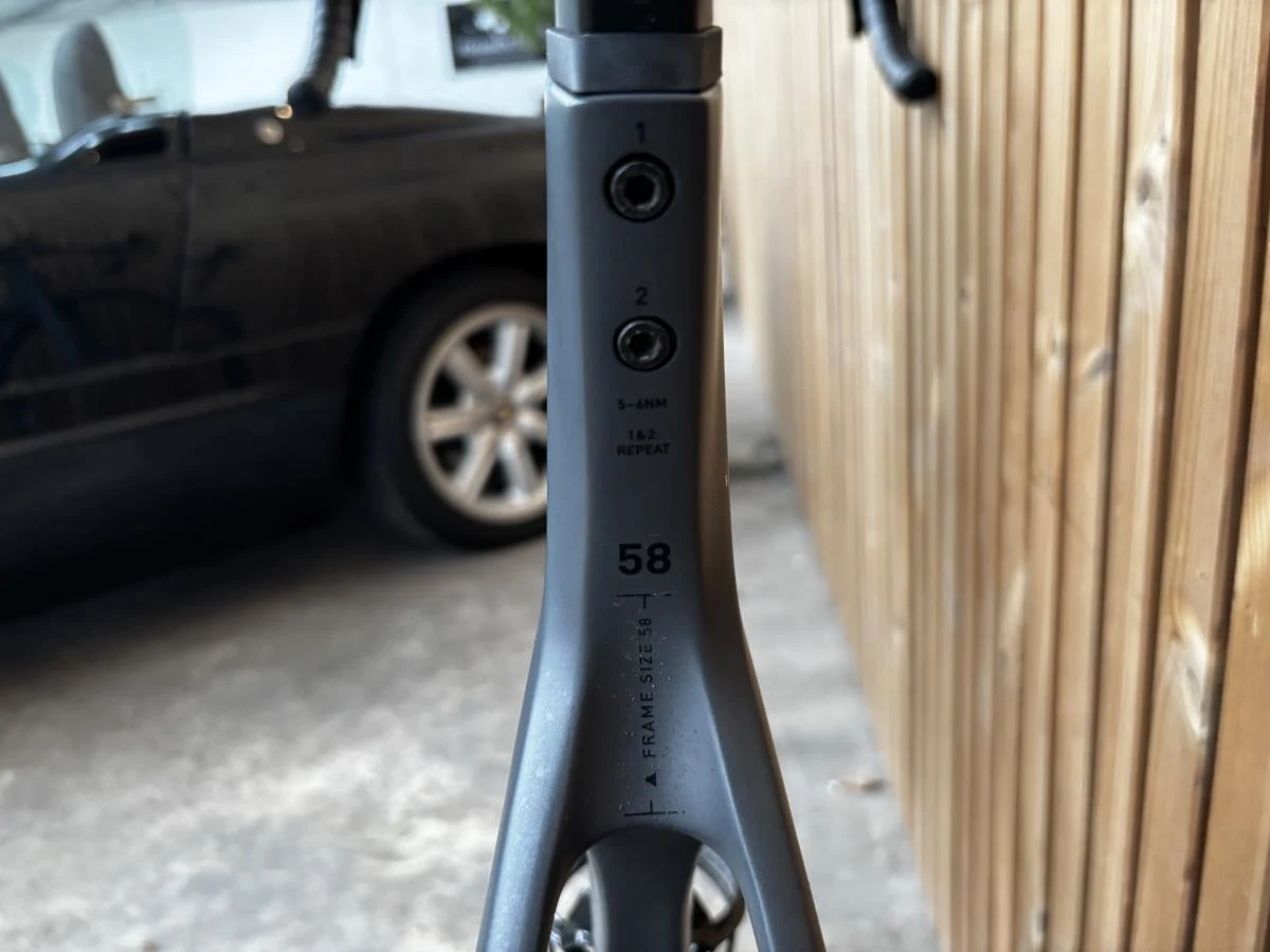 * Carbon kader * Schijfremmen * Elektrisch versnellingsapparaat SRAM RIVA 2x12 * Frame Size 58