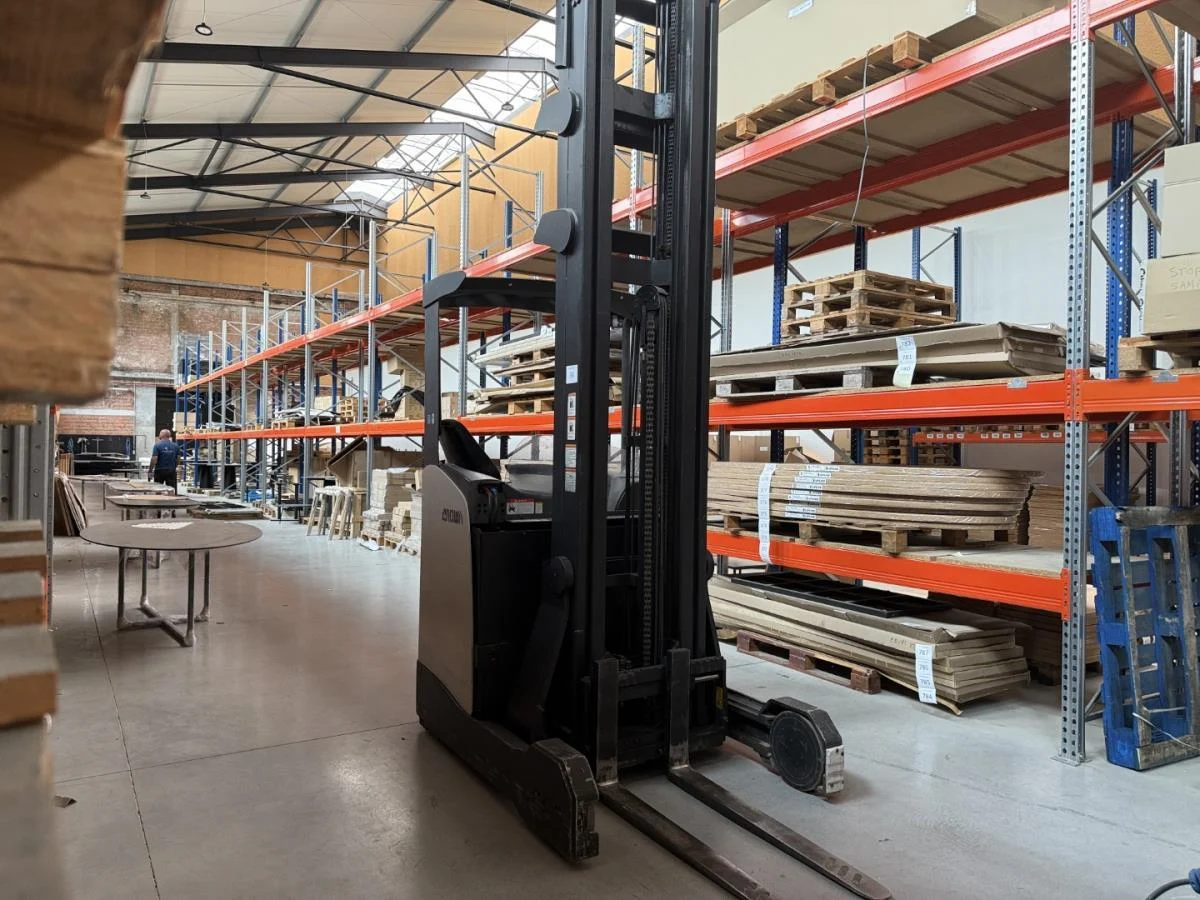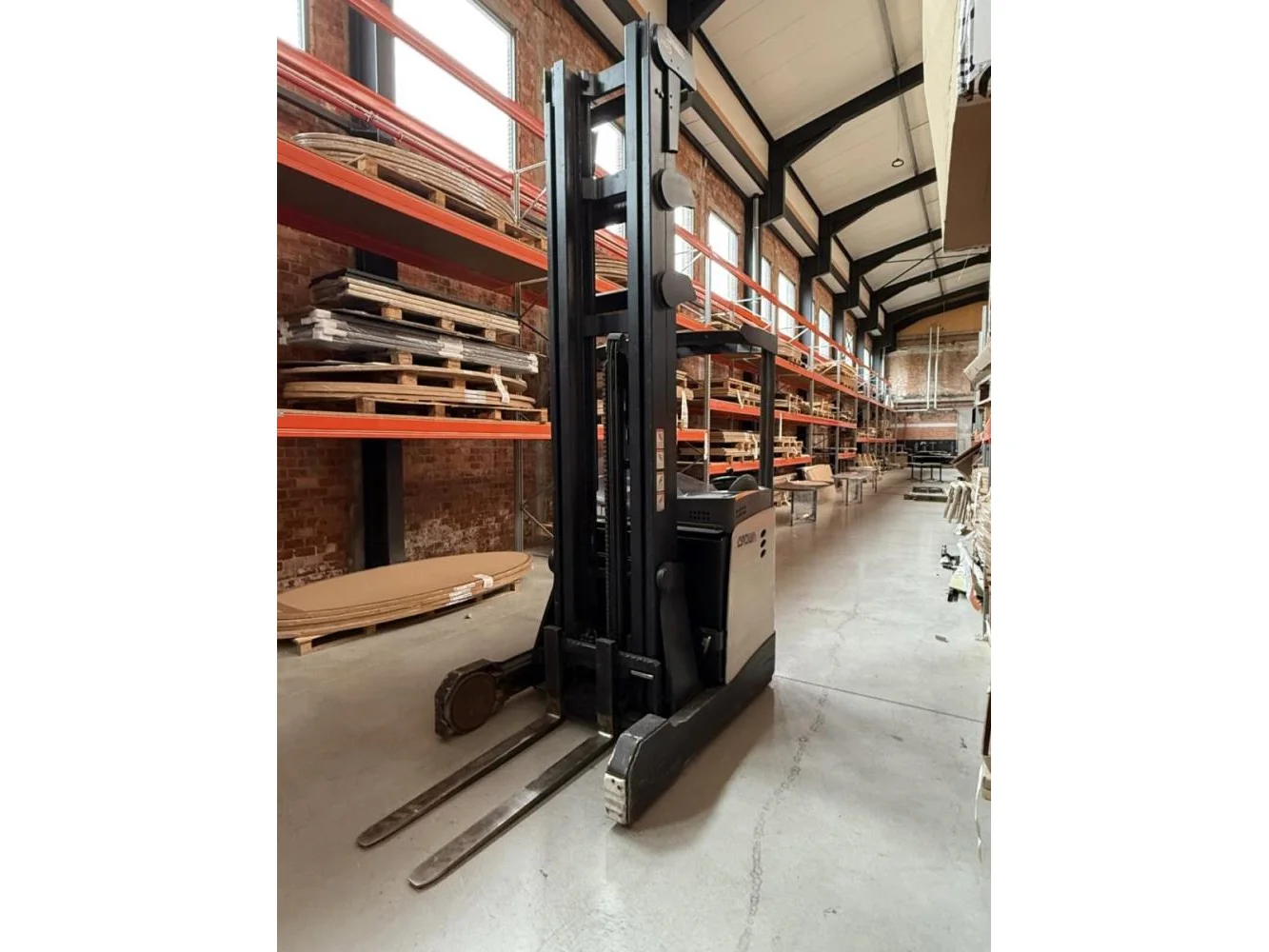 De Crown ESR 5000 is een serie reachtrucks van Crown, bekend om hun hoge productiviteit, geavanceerde technologie en ergonomisch comfort . Hoewel dit een ouder model is, hebben nieuwere ESR-series veel functies van dit type overgenomen. De ESR 5000-serie is ontworpen voor gebruik in smalle gangpaden en voor toepassingen met hoge stapeldichtheid. Belangrijkste kenmerken Capaciteit: Afhankelijk van het specifieke model (bijvoorbeeld de ESR 5000-1.4, ESR 5000-1.6 en ESR 5000-2.0) varieert de capaciteit tussen de 1400 kg en 2000 kg bij een lastzwaartepunt van 600 mm. Besturing: Het 360 Select™-stuursysteem maakt het mogelijk om te kiezen tussen een 180° en 360° stuurhoek, wat bijdraagt aan de wendbaarheid in krappe ruimtes. Technologie: De trucks zijn uitgerust met het Crown Integrated Control System met Access 1 2 3® voor de tractie, hydrauliek en besturing, evenals CAN-Bus technologie. Ergonomie: De ESR 5000-serie is ontworpen met het oog op comfort voor de bestuurder. Dit omvat een lage instap, een verstelbare stoel en bedieningselementen, en een goed geplaatste stuurkolom. Het geavanceerdere model, de ESR 5000 S-klasse, beschikte over de optie van een roterende MoveSeat™ en een gekantelde dakbeschermer voor beter zicht naar boven. Prestaties: Door efficiënte systemen zoals de e-GEN remmen en regeneratief dalen wordt energie teruggewonnen, wat de productiviteit verhoogt en de accuduur verlengt. Koper staat in voor het verzorgen van het transsport!!!