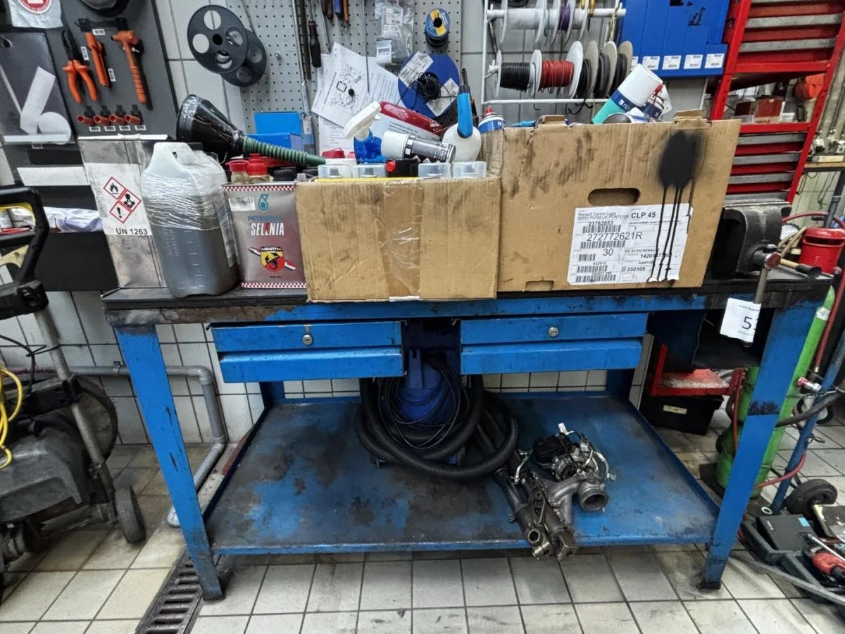 Vv bankschroef, inh div spuitbussen, oliën en gereedschappen