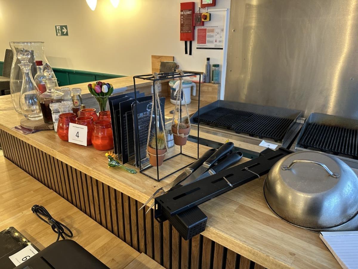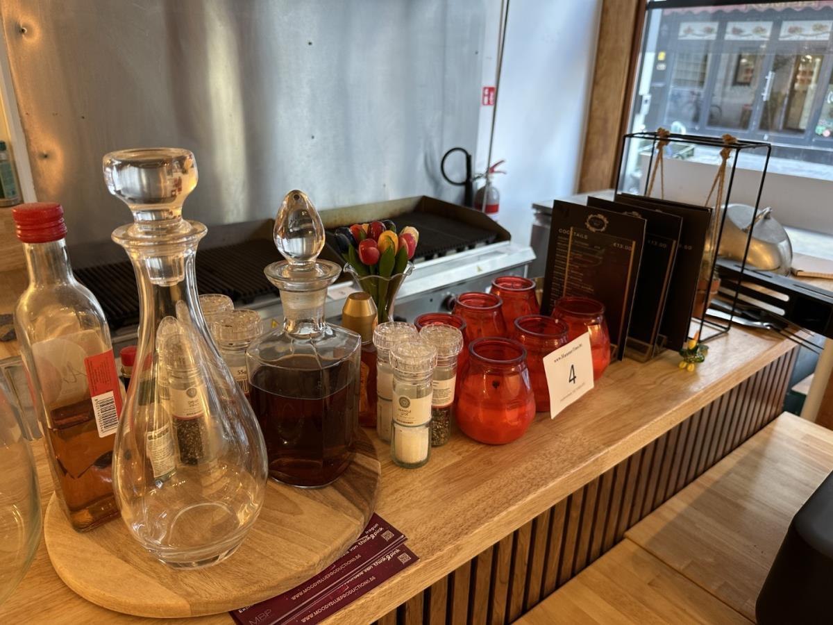 Inhoud kaarsen, peper zout, menu kaarten, messen