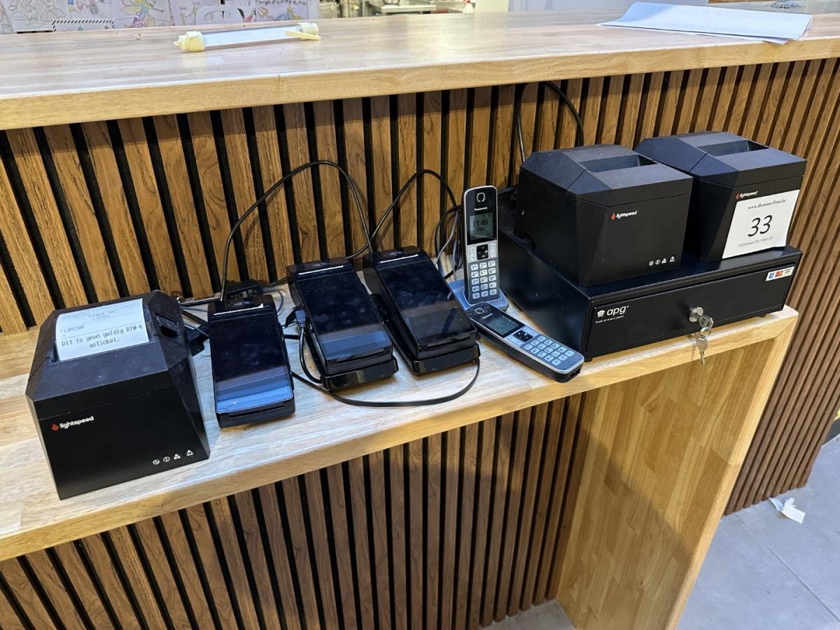 3 ticketprinters , kassalade, 3x bc , telefoon