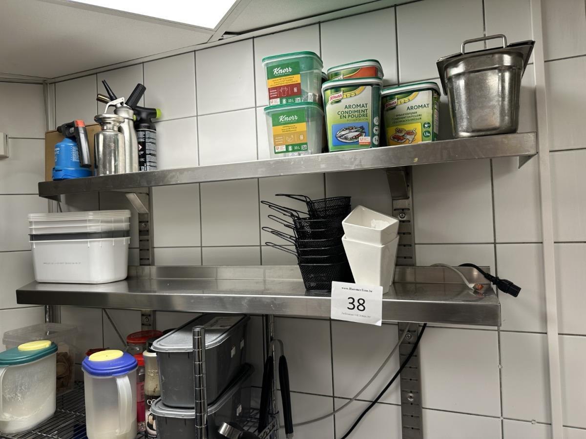 2 rvs schappen + inhoud