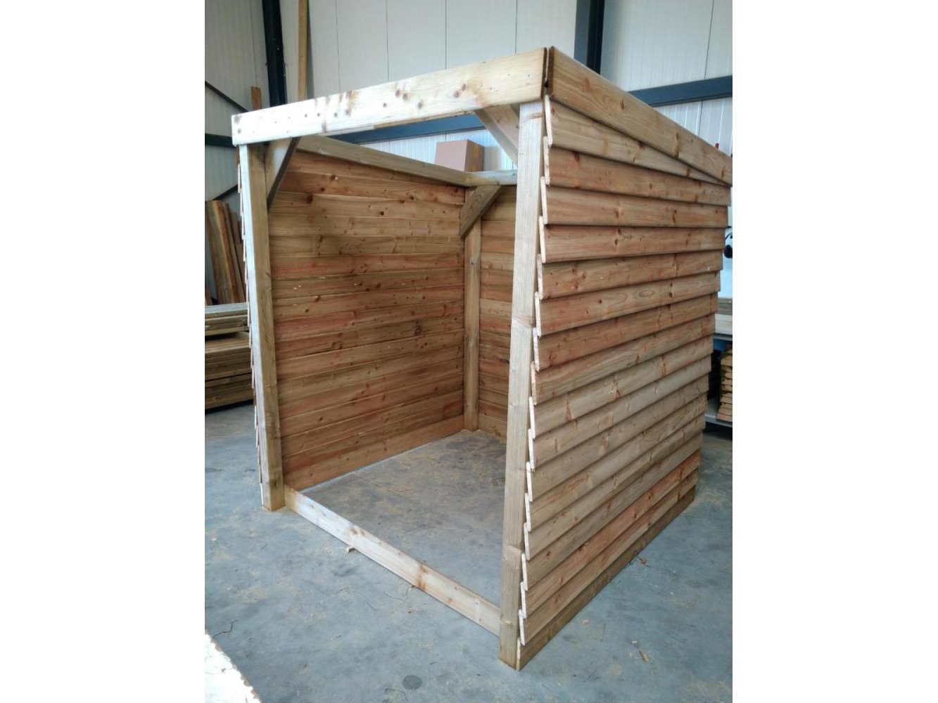 Schuilhut 1.80 x 3.60 geimpregneerd grenen met 3 gesloten wanden wordt geleverd als bouwpakket bevestigingsmateriaal inbegrepen excl nietjes dakplaten niet inbegrepen.