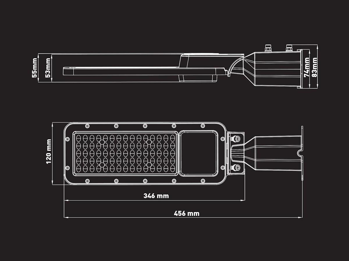 8 x 50 watt 5000K LED Straatverlichting met Lens Waterdicht - lichtstroom 5250 lumen - lichtkleur daglicht 5000K - waterdicht IP65 - stralingshoek 90° - met lens - met kantelbare wandbeugel - product kleur zwart - afm. 456 x 120 x 55mm - materiaal aluminium en PC lens - met lens nauwkeurige lichtbundels zonder verspilling voor maximale helderheid - bescherming tegen mechanische inslagen IK07 - bevestigingsset niet inclusief - levensduur 30.000 uren - voltage 220-240V - sku 01118