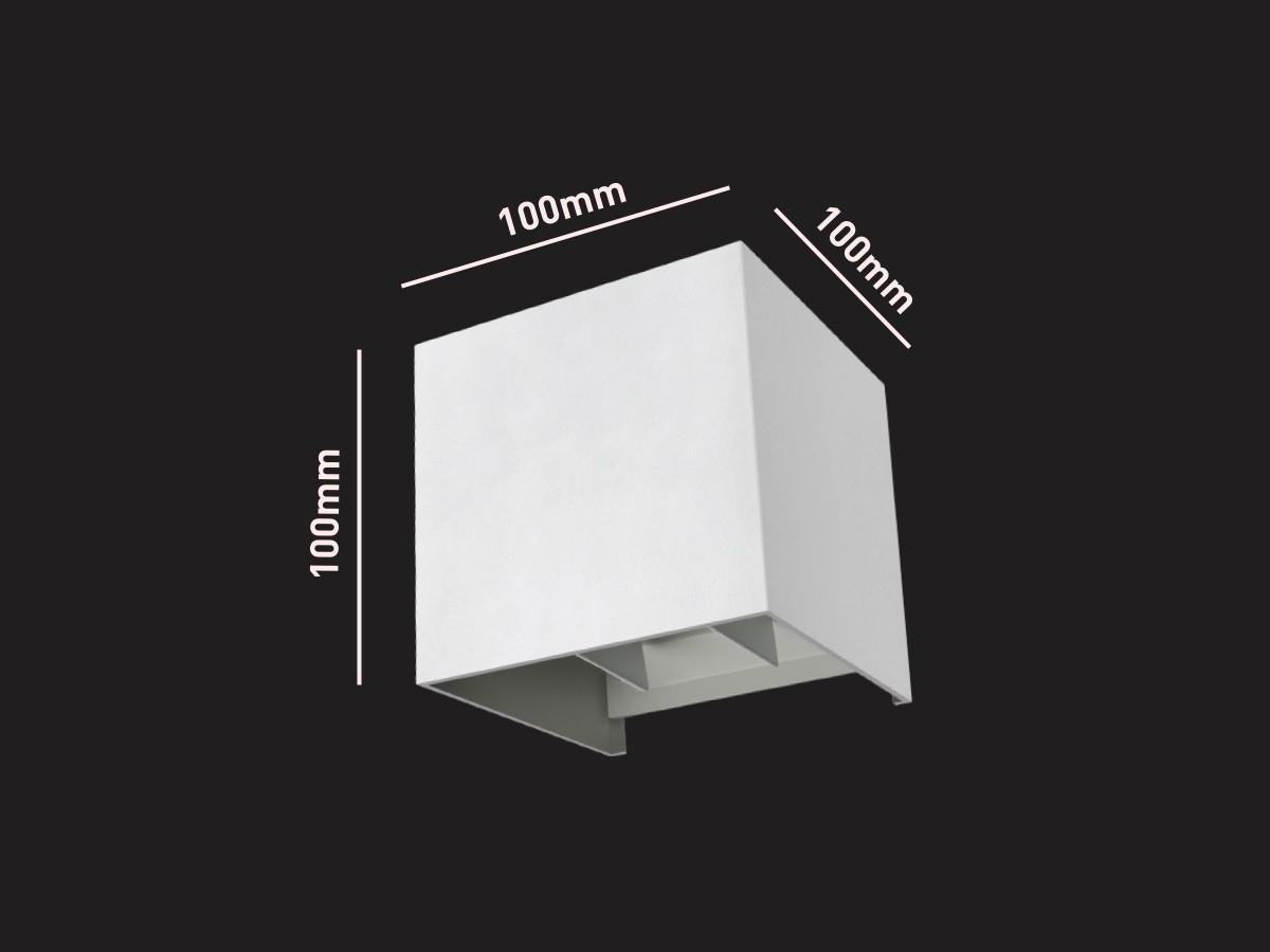 4 x 12 watt 2x6W LED zand wit wandlamp kubus duo licht verstelbaar - afdichting IP65 waterdicht - verstelbare hoek van de lichtbundels - lichtkleur 3000K warm wit - lichtstroom 1160 lumen - COB LED - materiaal aluminium - boven en onder verlichting - afm. 100mm x 100mm x 100mm - voltage 220-240V - bevestiging inclusief - geschikt voor binnen en buiten - SKU 00977