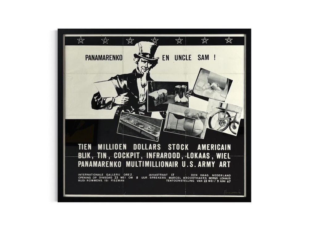 Gesigneerde affiche voor Panamarenko's eerste tentoonstelling met gastspreker Marcel Broodthaers - Gesigneerd door de kunstenaar - Professioneel ingelijst - Galerijprijs: 3250 64x58 cm