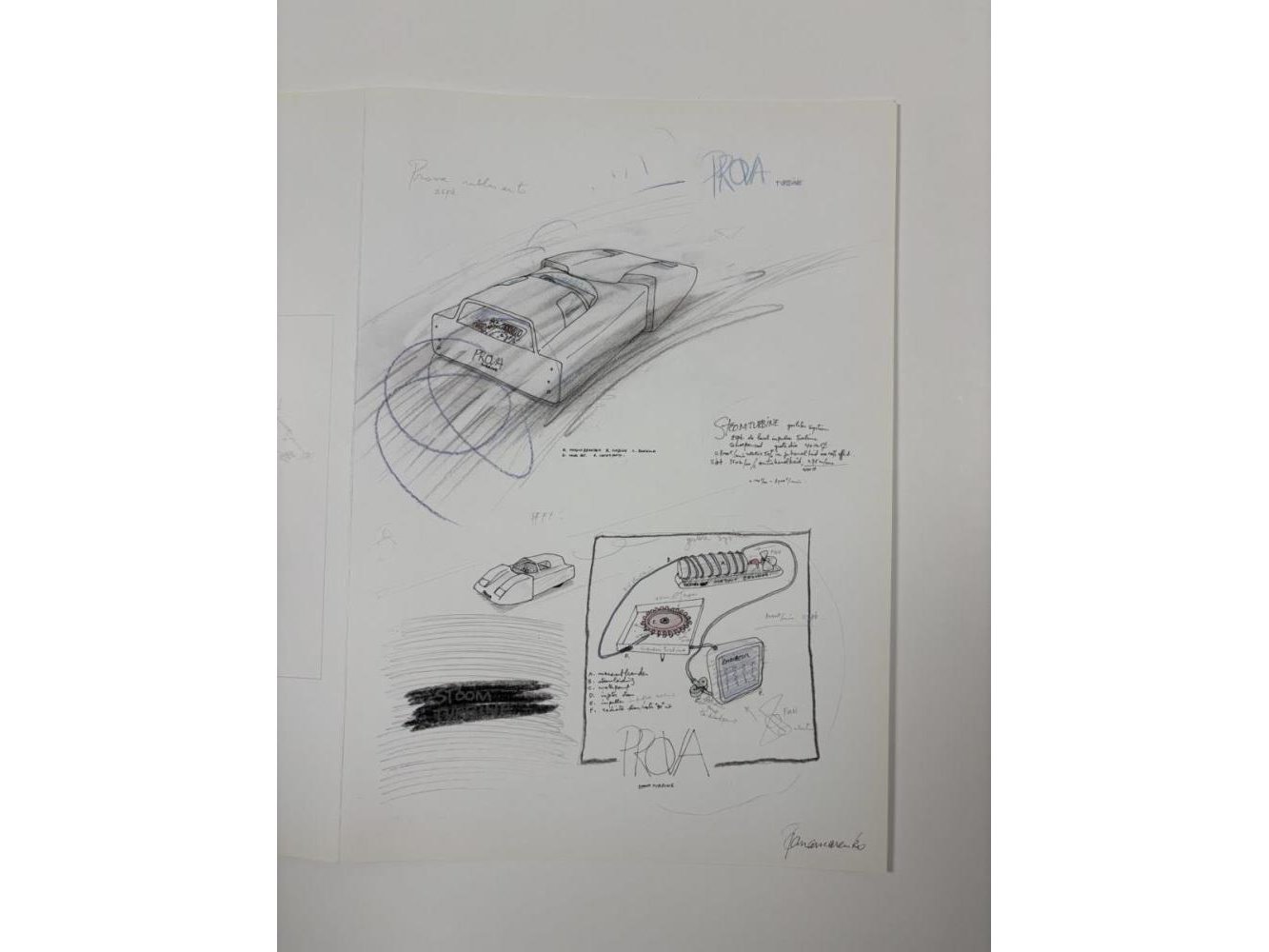 Print in drieluik 'Prova Car' door Panamarenko