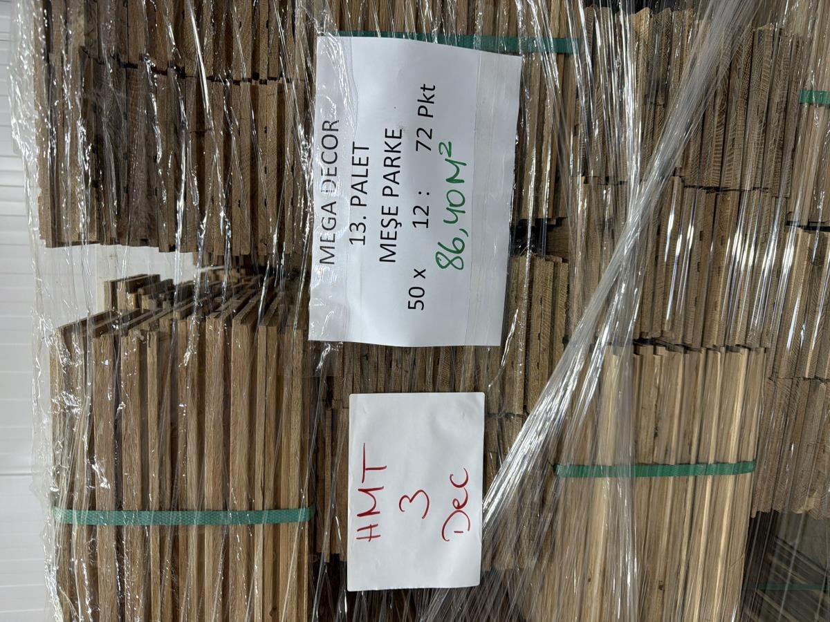 95,04 m2 Eiken massief parket, kan ook visgraat gelegd worden, onbehandeld, mes en groef te verlijmen, afmetingen: 90x12 cm, 18mm dik