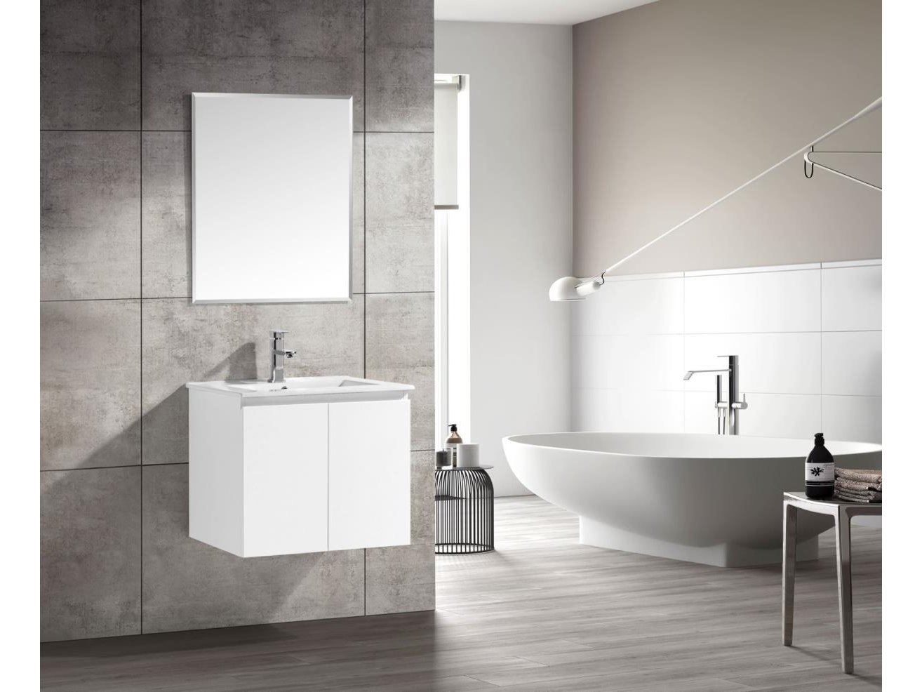 1 x 60cm badkamermeubelset MDF - BERN 600-02 - Kleur: Mat wit - Afm. B60xH50xD46CM - Ceramic wastafel - 2 deuren voorzien van Softclose systeem - Spiegel 60x60cm - kraan, krepin en sifon niet inbegrepen -