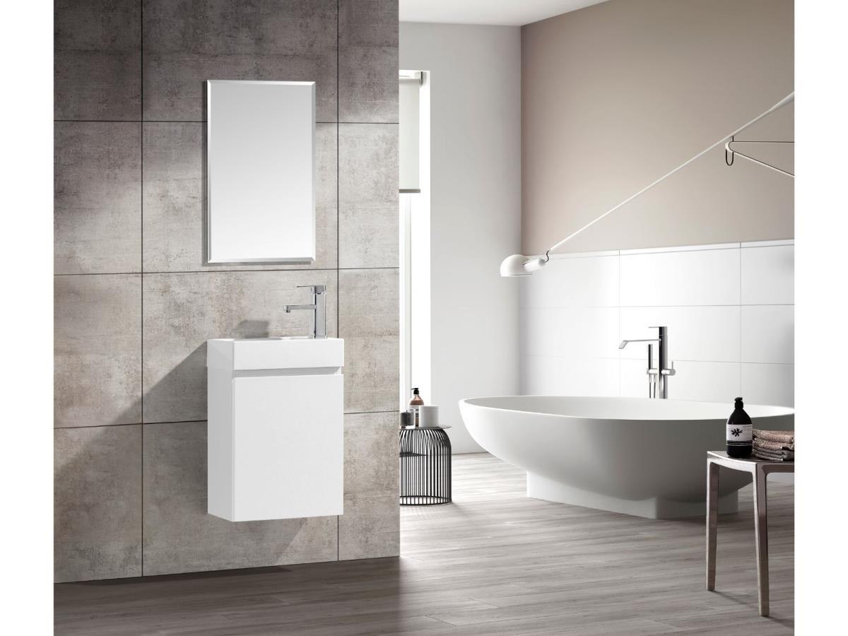 2 x 40cm Toiletmeubel COMO40 - 03 - Kleur: mat wit - Met wastafel - Afm. B40xH60xD22CM - Deur voorzien van Softclose systeem - Spiegel 40x70cm- kraan, krepin en sifon niet inbegrepen -