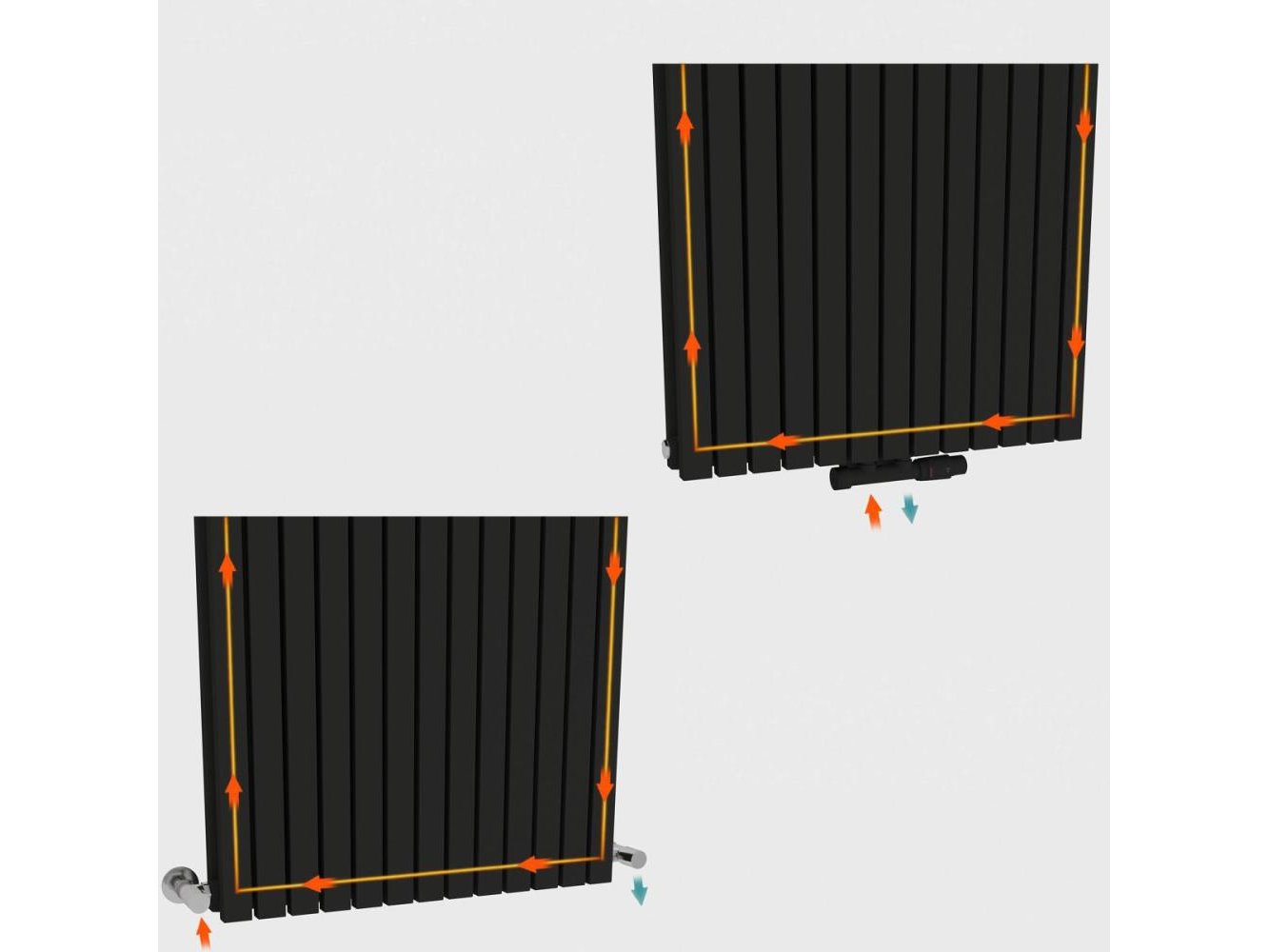 1 x H1800 x B500 mm, vierkant tube designradiator met middenaansluiting Vero Kleur mat zwart 2927 Watt muurbevestiging Incl. Design kraanset niet inbegrepen