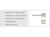 Doos bestaande uit 20 sets deurklinken. Elke set bestaat uit een deurklink voor beide zijden van de deur alsook een sleutelrosas voor beide zijden van de deur. De patentvijzen alsook de houtschroeven zijn aanwezig in elke set. Deze deurklink heeft een zeer fijne deurgreep, wat ideaal is om een moderne ‘look’ te creëren bij uw binnendeur. De afwerking in inox is tijdloos en past dan ook bij elke deur. Omwille van een overstock worden deze deurklinken onder productieprijs verkocht.