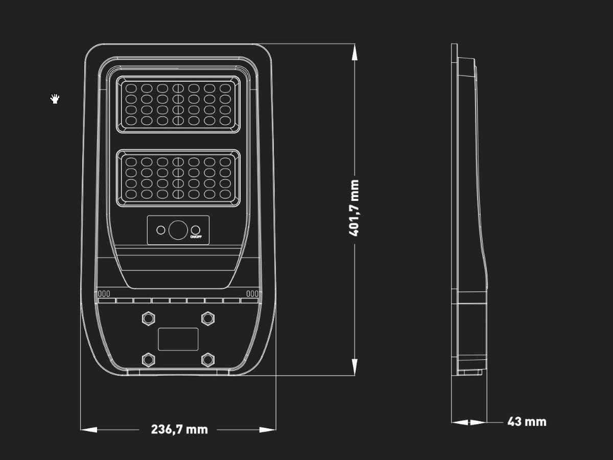 6 x Solar 5000K LED Straatverlichting met Microwave Sensor en Afstandsbediening - lichtkleur daglicht 5000K - waterdicht IP65 - lichtstroom max 750 lumen - product kleur zwart - afm 401.7 x 236.7 x 43mm - stralingshoek 90° - behuizing PC en ABS - zonnepaneel voltage 6V - batterij 5Ah - met microwave sensor - met afstand bediening kan dimmen en timer instellen - werkt totaal meer dan 12uur - bescherming tegen mechanische inslagen IK07 - wandbeugel en bevestiging niet inclusief - sku 1123S