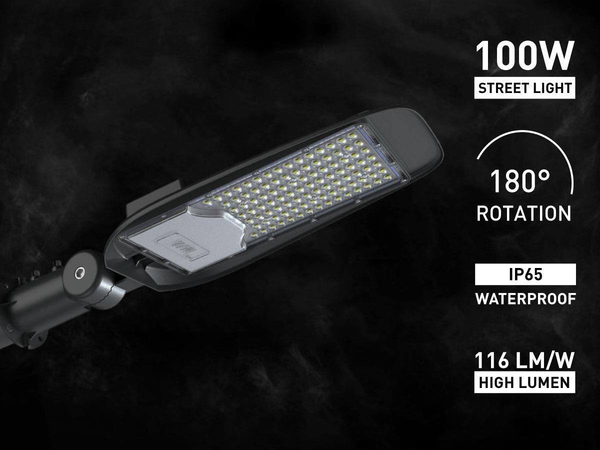 2 x 100 watt 6200K LED Pro Hoog Lumen Straat verlichtingen Waterdicht kantelbaar - lichtstroom 11600 lumen - lichtkleur daglight 6200K - waterdicht IP65 - stralingshoek 130° - met lens - met kantelbare wandbeugel - product kleur zwart - afm. 562 x 215 x 98mm - materiaal aluminium en PC lens - met IC driver - bevestigingsset niet inclusief - levensduur 35.000 uren - voltage 85-265V - Energieklasse D - sku 00939