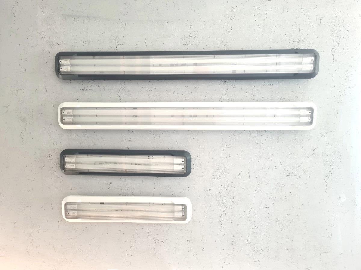 8 x 120cm Pro Design dubbele LED TL T8 armaturen waterdicht donkergrijs met reflector - IP65 waterdicht - product kleur donkergrijs - afm. 1289 x 138 x 84mm - materiaal PC & ijzer reflector - bevestigingsset inclusief - twee T8 Tube invoer - LED TL Tube niet inbegrepen - voltage 220-240V - een zijde L N aansluiting - max 36 watt - Attentie verkeerd informatie over product kleur op de dozen - compatibel met 120cm TL buizen - SKU 00653
