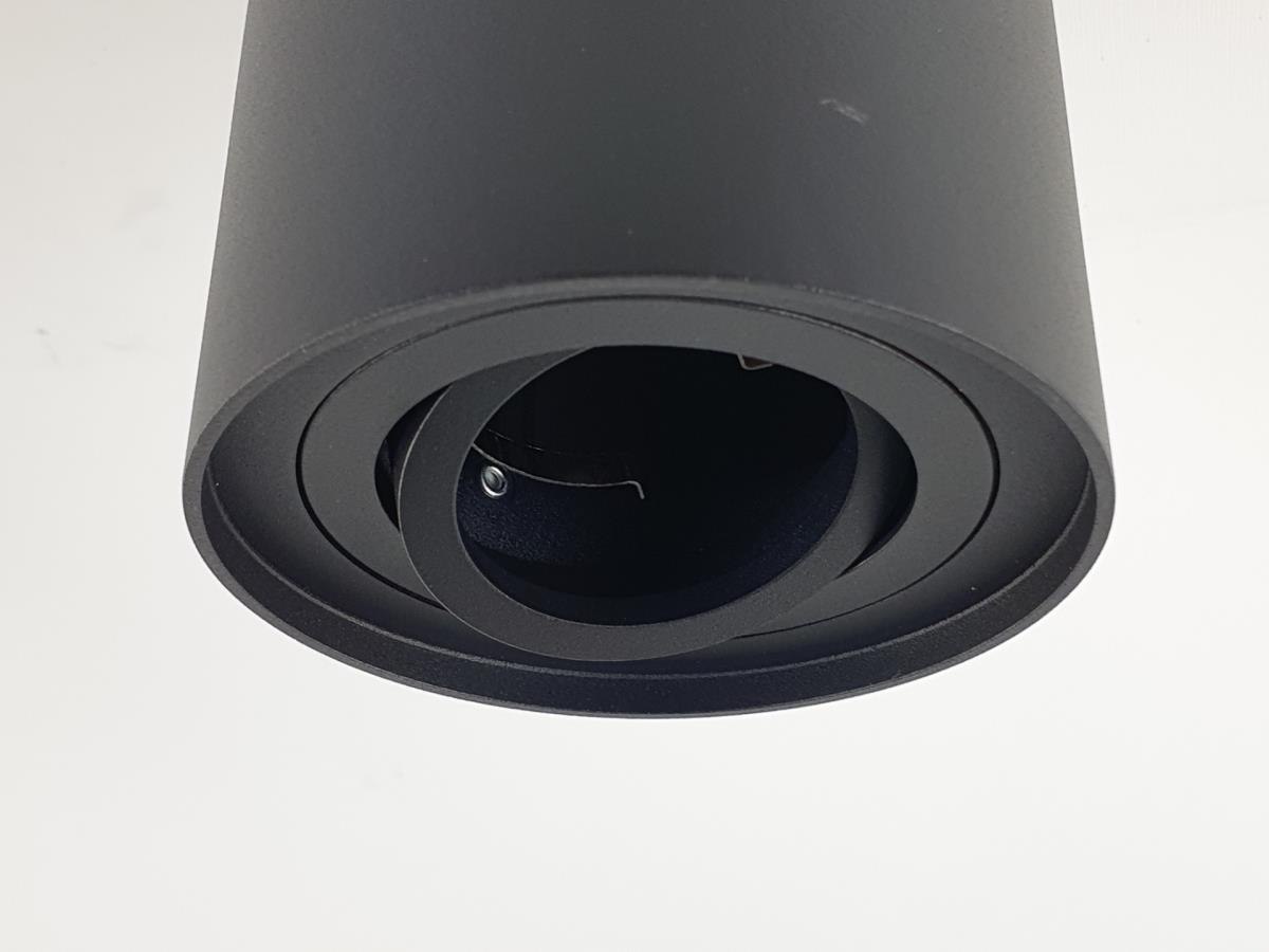 12 x GU10 Opbouwspot Armatuur cilinder zand zwart kantelbaar - afdichting IP20 - product kleur zand zwart - afm. Ø 96 x 125mm - bevestiging inclusief - materiaal aluminium - fitting GU10 - bulb niet inbegrepen - geschikt voor binnen - een bulb invoer - voltage 220-240V - SKU 00329