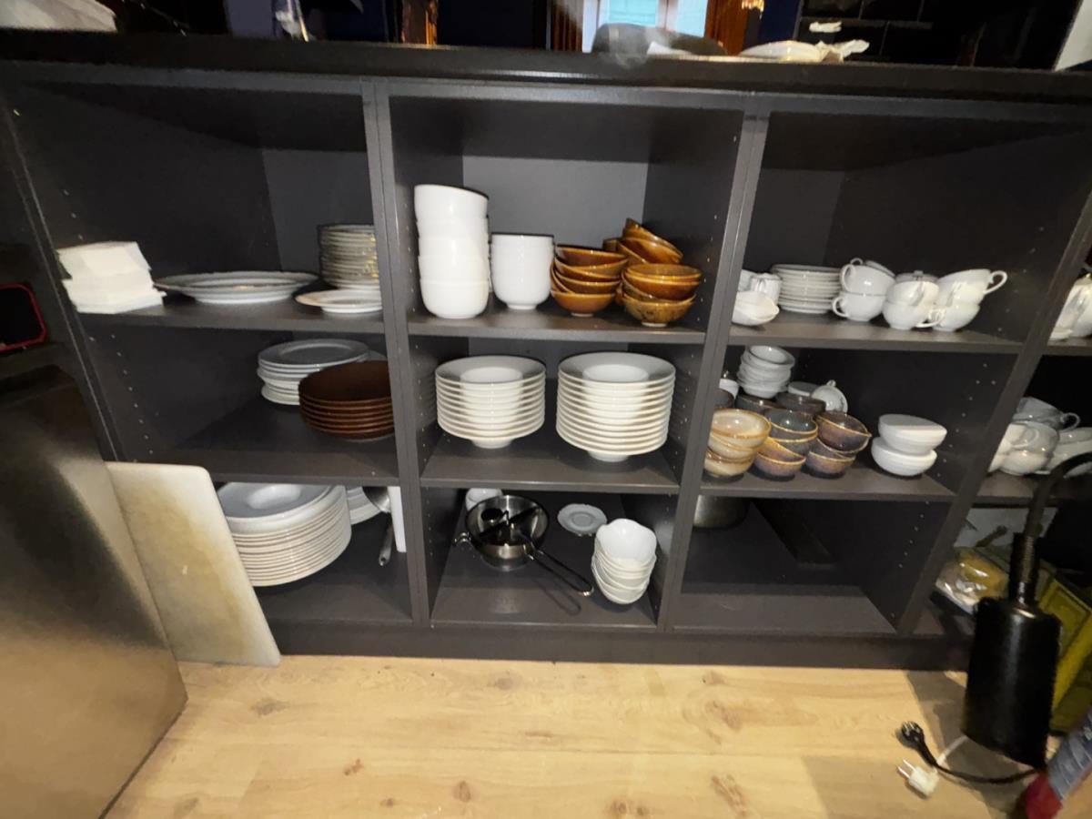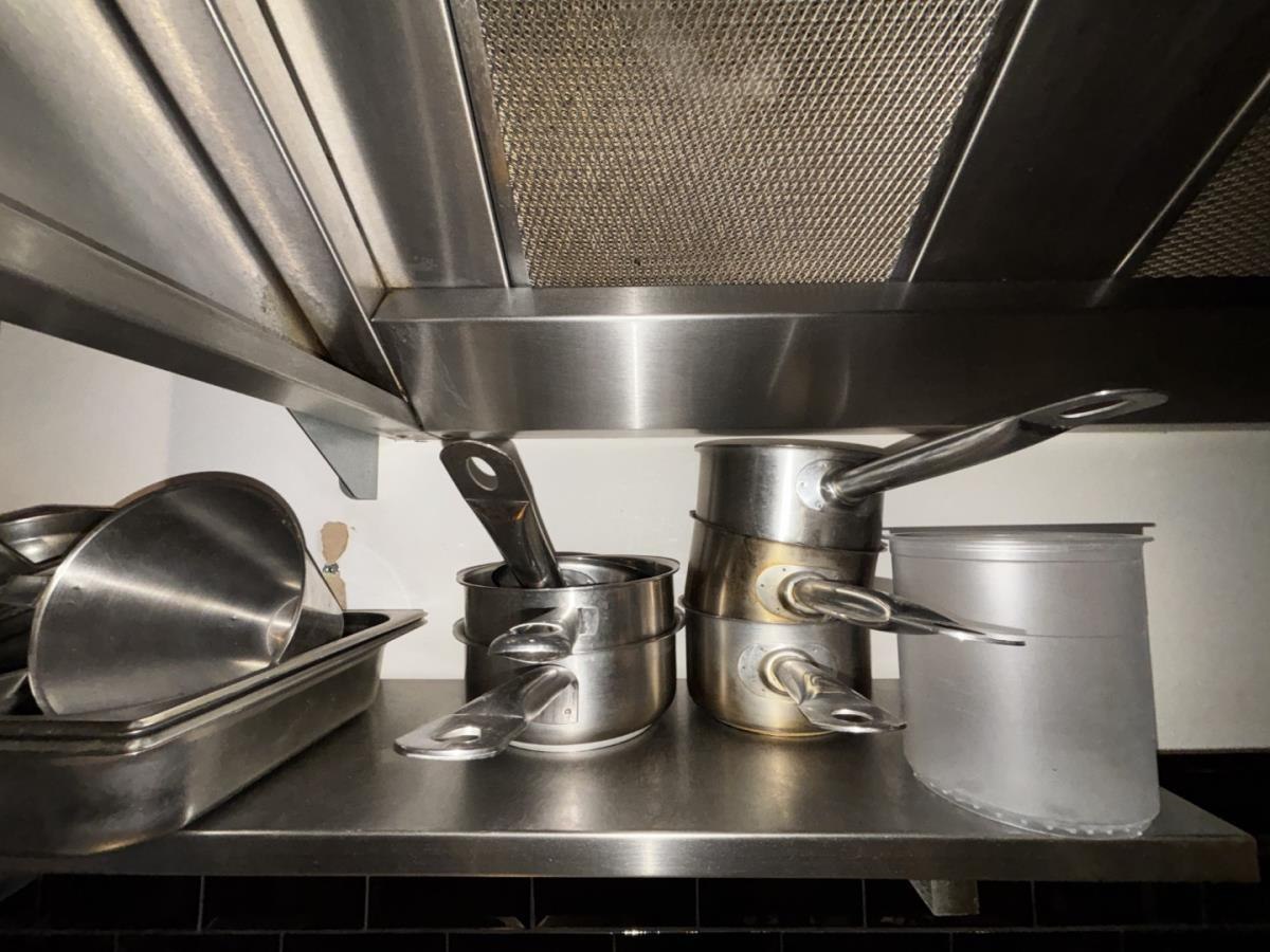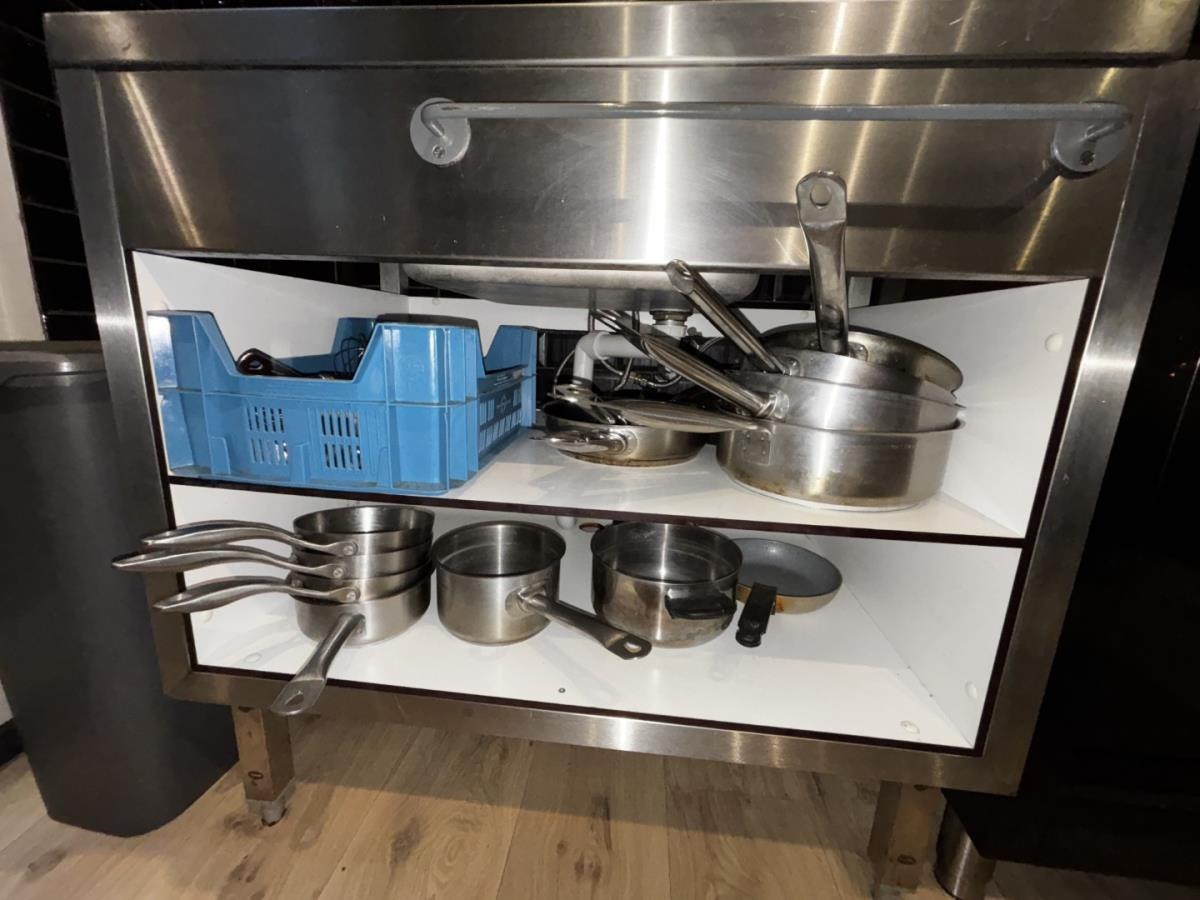 Staat op 1ste verdieping, bu oa waterkoker KITCHENAID, RVS gastronormen, potten en pannen , borden, kommen, tassen ea. Staat op eerste verdieping!