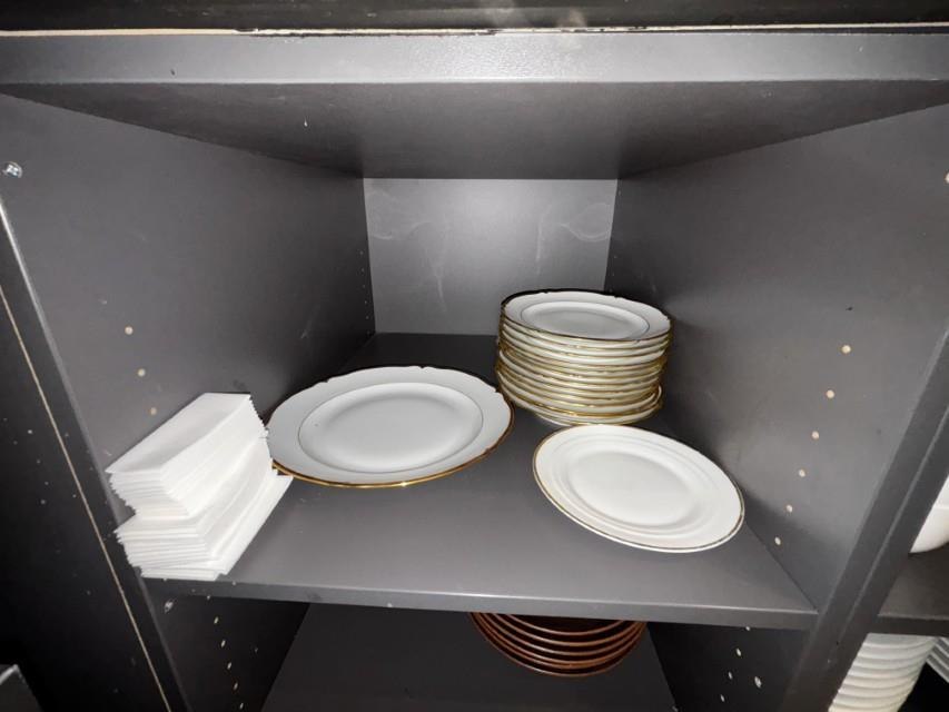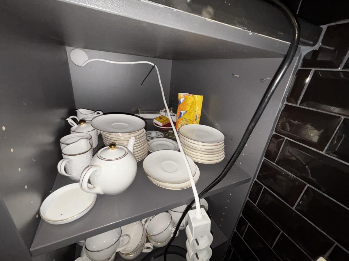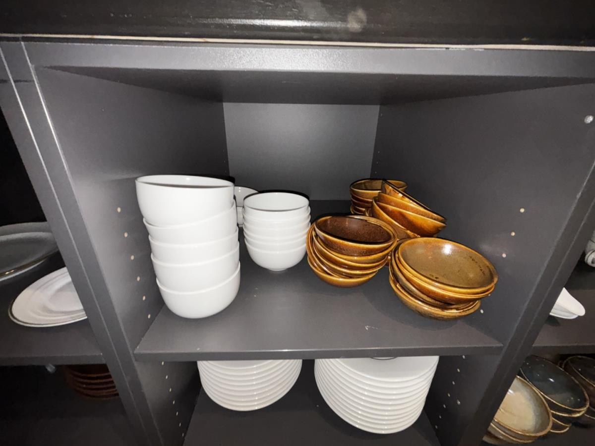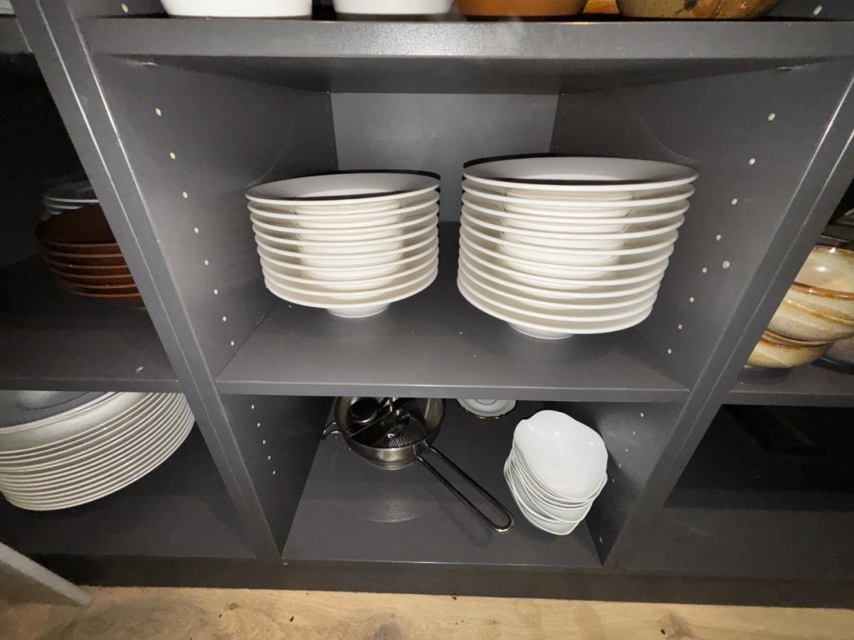 Staat op 1ste verdieping, bu oa waterkoker KITCHENAID, RVS gastronormen, potten en pannen , borden, kommen, tassen ea. Staat op eerste verdieping!