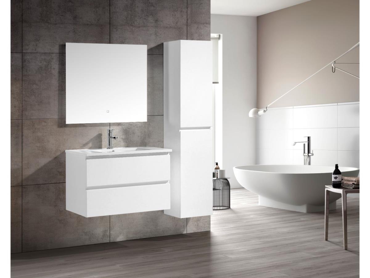 1 x 80cm Design badkamermeubelset MDF ROMA 80-03 - Kleur: Mat wit - Afm. B80xH50xD46CM -Mineraalmarmer wastel - 2 Lades met softclose systeem - LED Spiegel 80x70cm (Verschillende kleurtemperaturen 3000K Warm-wit, 4000K Neutraal-wit, 6500K Koud-wit) + Anti Condens + Alle 3 de kleuren zijn dimbaar, zo kunt u het licht eenvoudig dimmen of feller maken tot het gewenste effect - kraan, krepin, sifon en kolomkast niet inbegrepen -