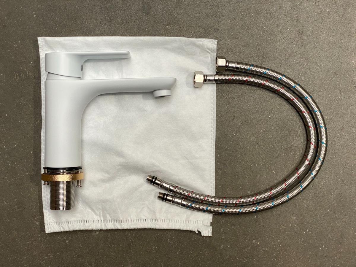 1 x Wastafelkraan Mat Wit - Madrid - Afm: H16cm - Flexibels (meegeleverd)