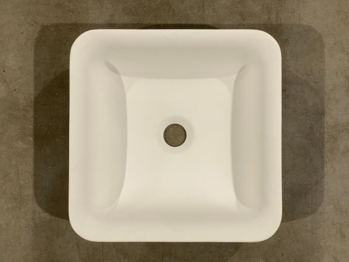 1 x Opbouw solid surface wastafel - vierkant model - Afm: 37x37x12cm - Sifon, krepin en kraan niet incl - CAPRI