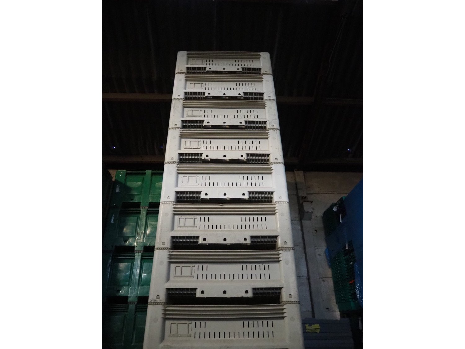 12 plastic pallet boxes, dimensions: (12x) 1140 mm x 1200 mm x 400 mm. Kavel locatie: Patrijsstraat 10, 3920 Lommel, België