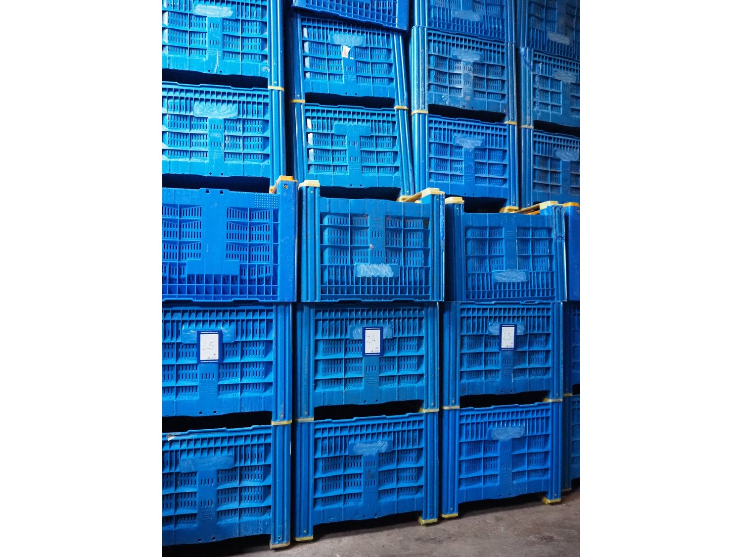 18 plastic pallet boxes, dimensions: (18x) 1190 mm x 990 mm x 760 mm. Kavel locatie: Patrijsstraat 10, 3920 Lommel, België