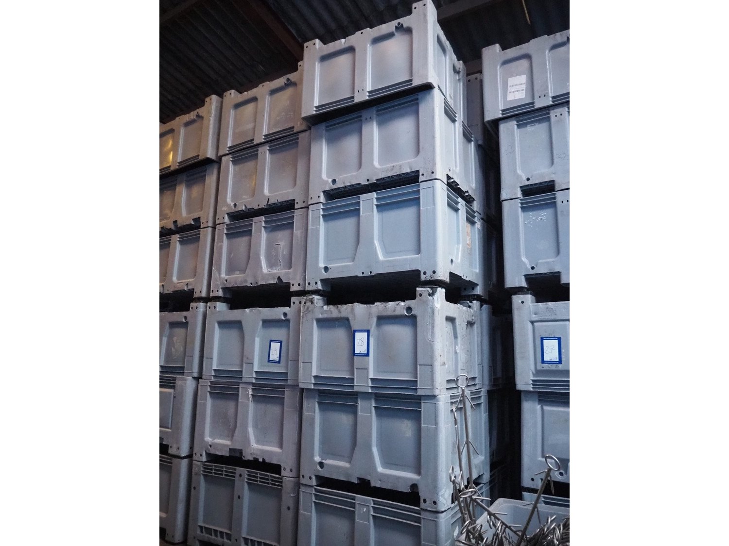 18 plastic pallet boxes, dimensions: (18x) 1190 mm x 990 mm x 710 mm. Kavel locatie: Patrijsstraat 10, 3920 Lommel, België