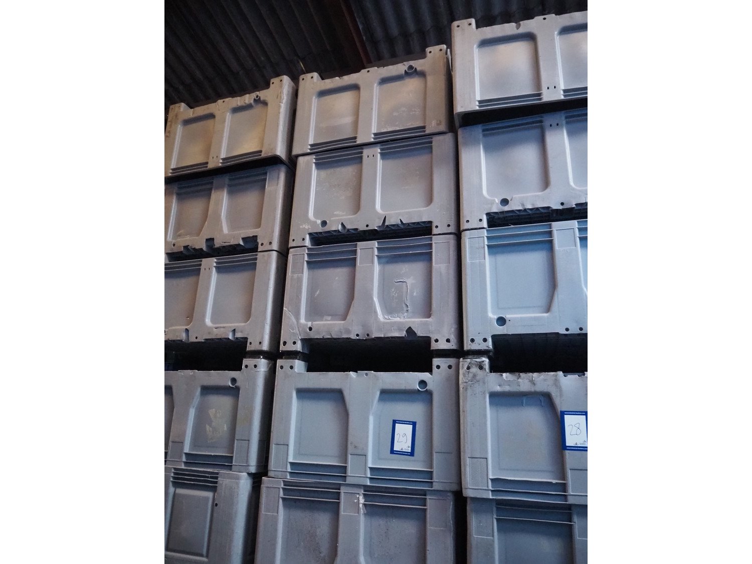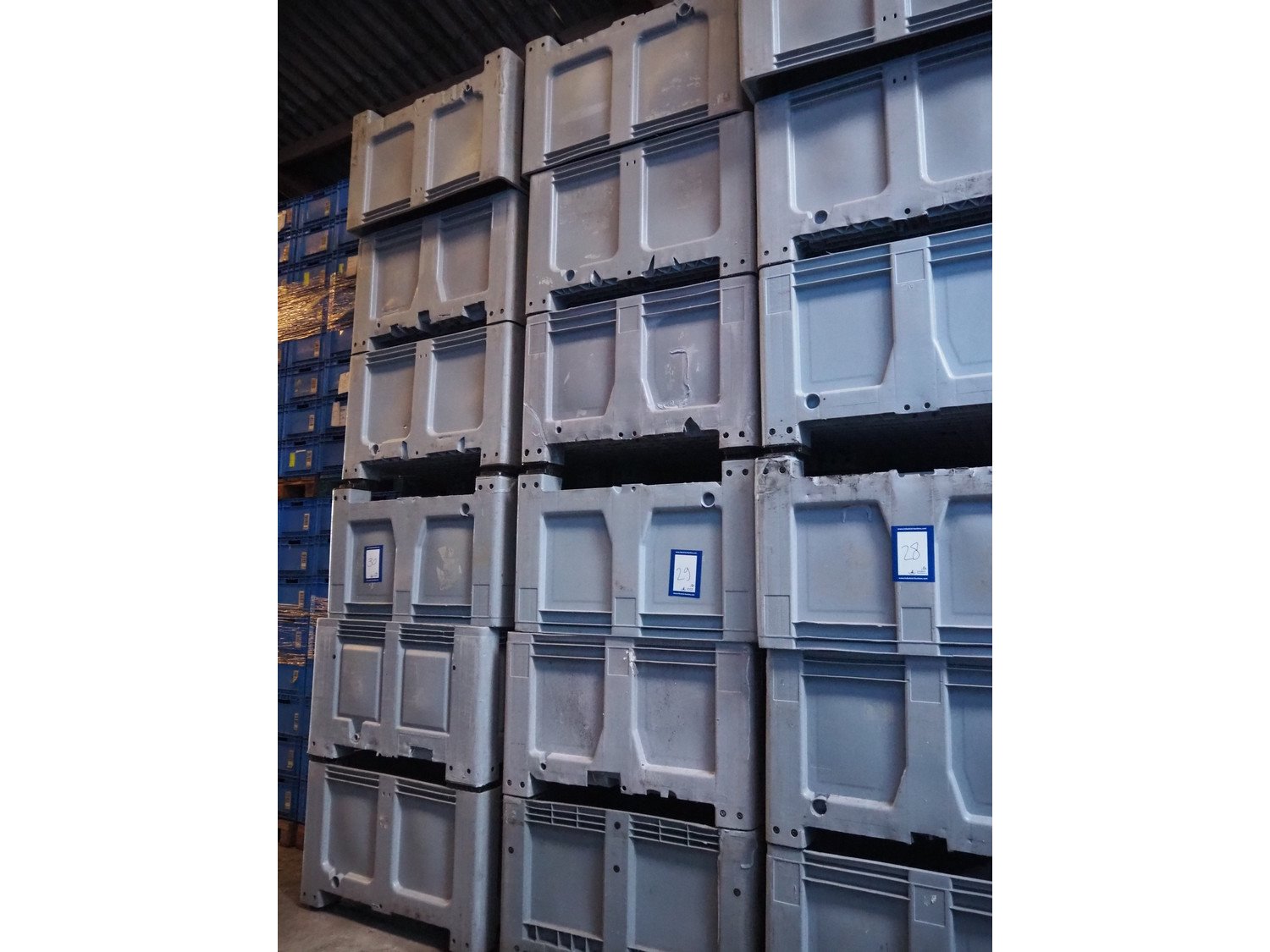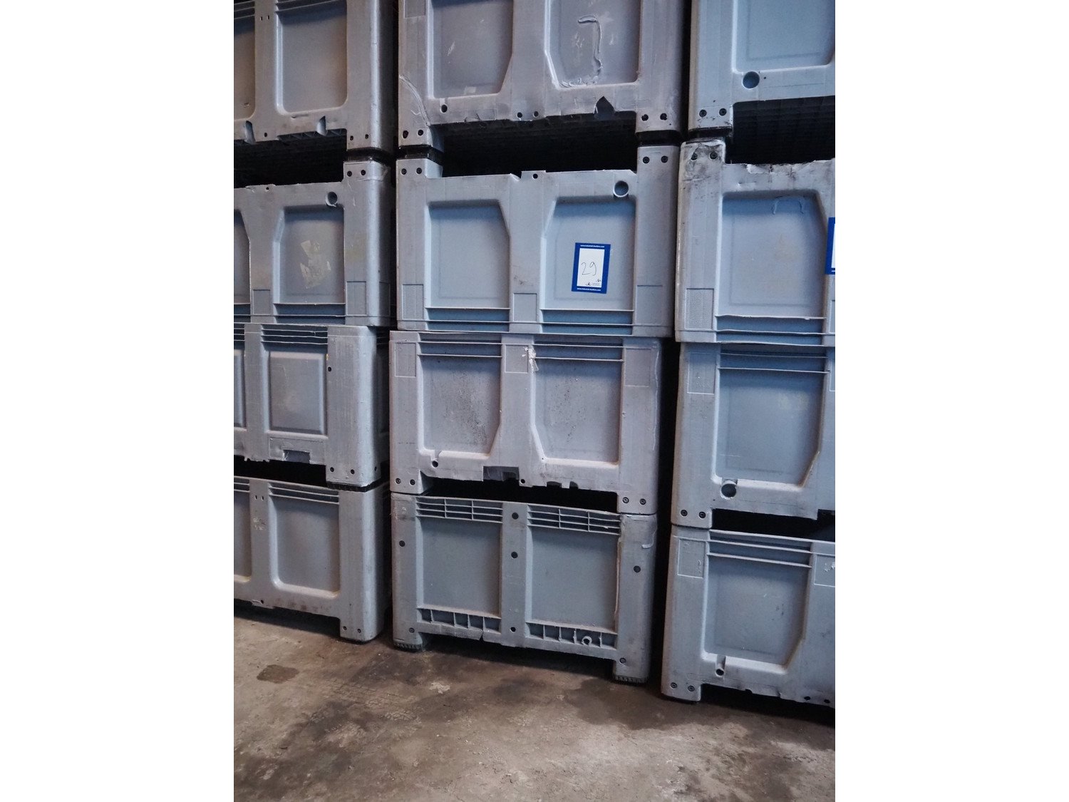 18 plastic pallet boxes, dimensions: (18x) 1190 mm x 990 mm x 710 mm. Kavel locatie: Patrijsstraat 10, 3920 Lommel, België