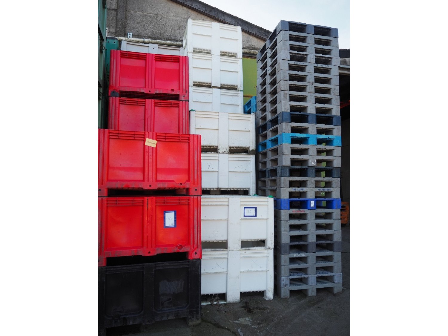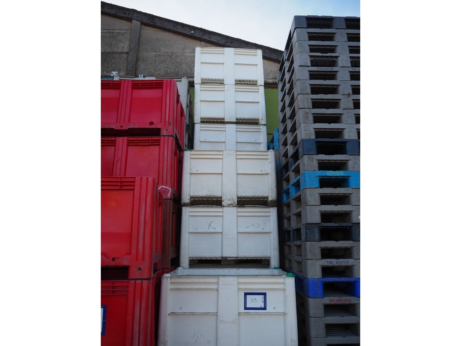 13 plastic pallet boxes, dimensions: (13x) 1160 mm x 790 mm x 720 mm. Kavel locatie: Patrijsstraat 10, 3920 Lommel, België