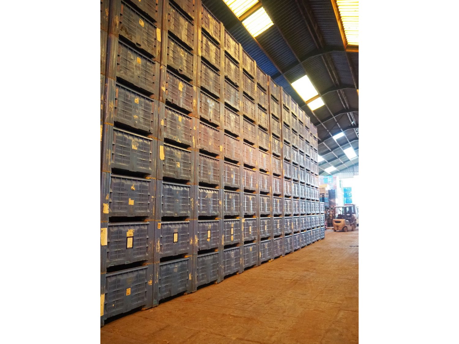 995 plastic pallet boxes, dimensions: (995x) 1120 mm x 1120 mm x 730 mm. Kavel locatie: Patrijsstraat 10, 3920 Lommel, België