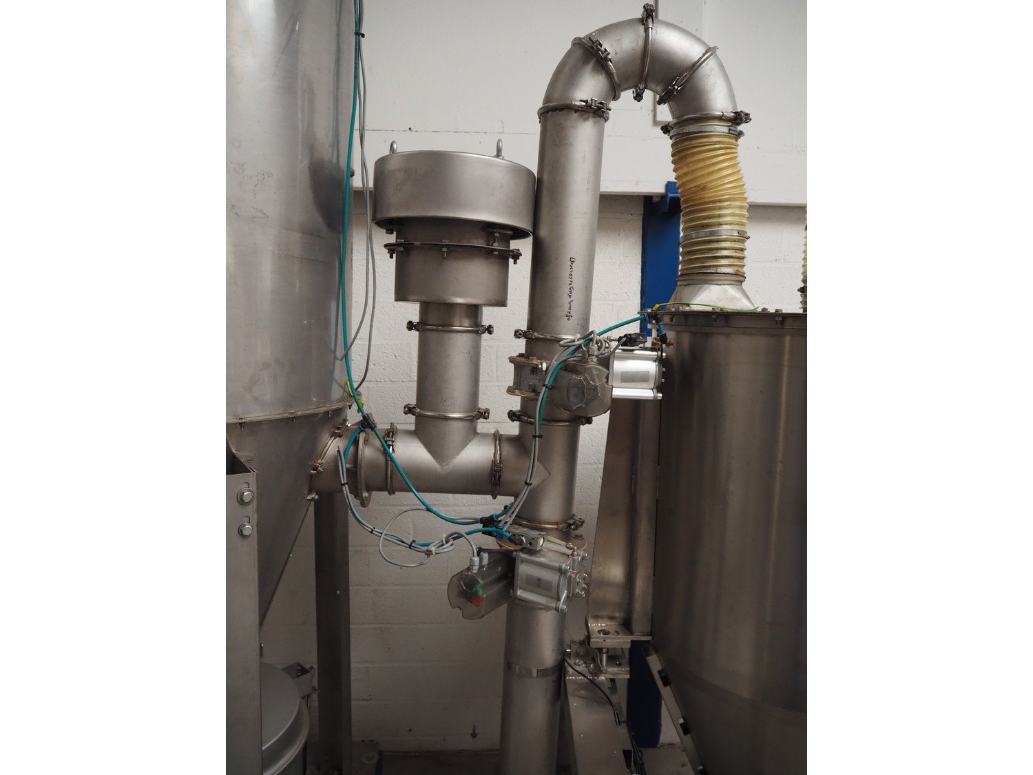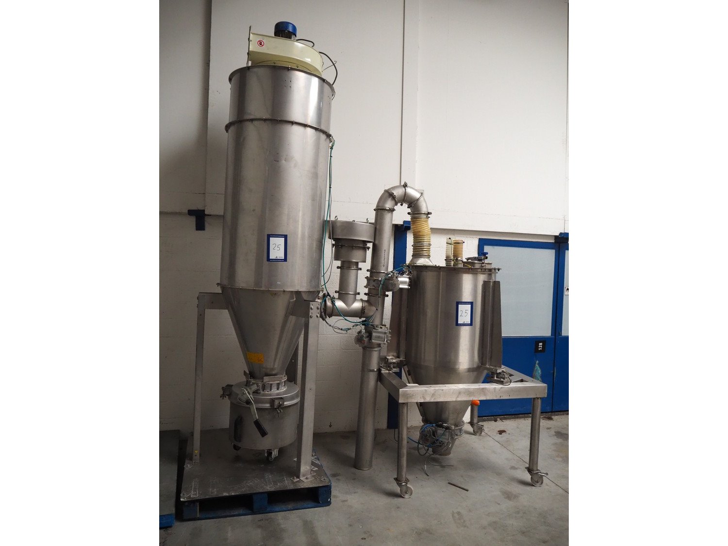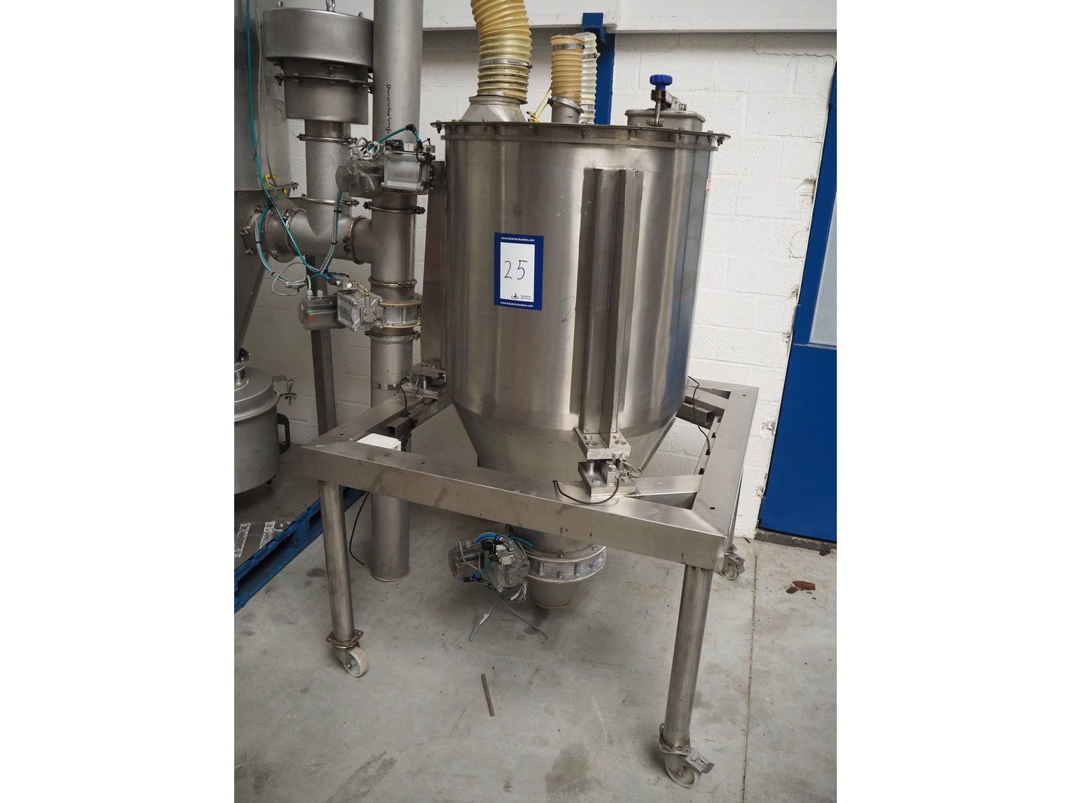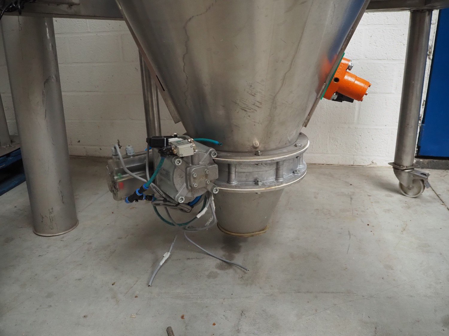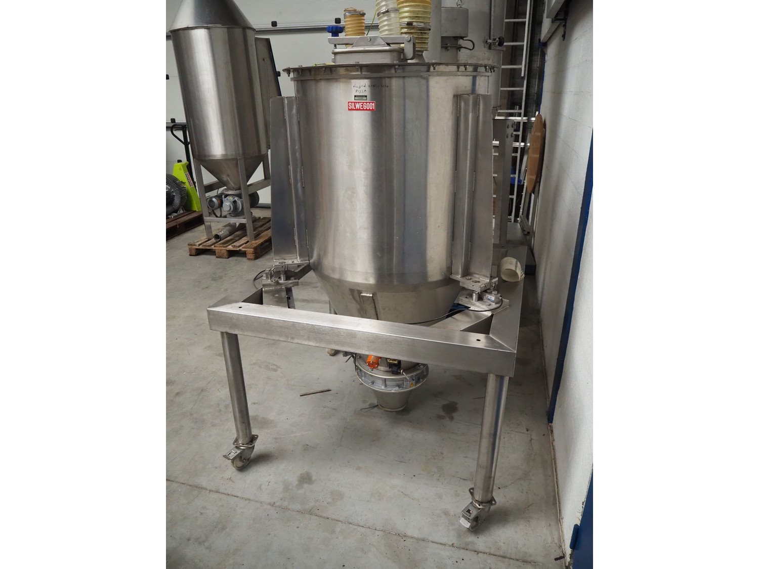 2 S/s tank, Ø tanks: 820 mm and 800 mm, Ø output: 150 mm, total dimensions: 1200 mm x 860 mm x 3200 mm. Kavel locatie: Beukenhofstraat 77A, 8570 Anzegem, België