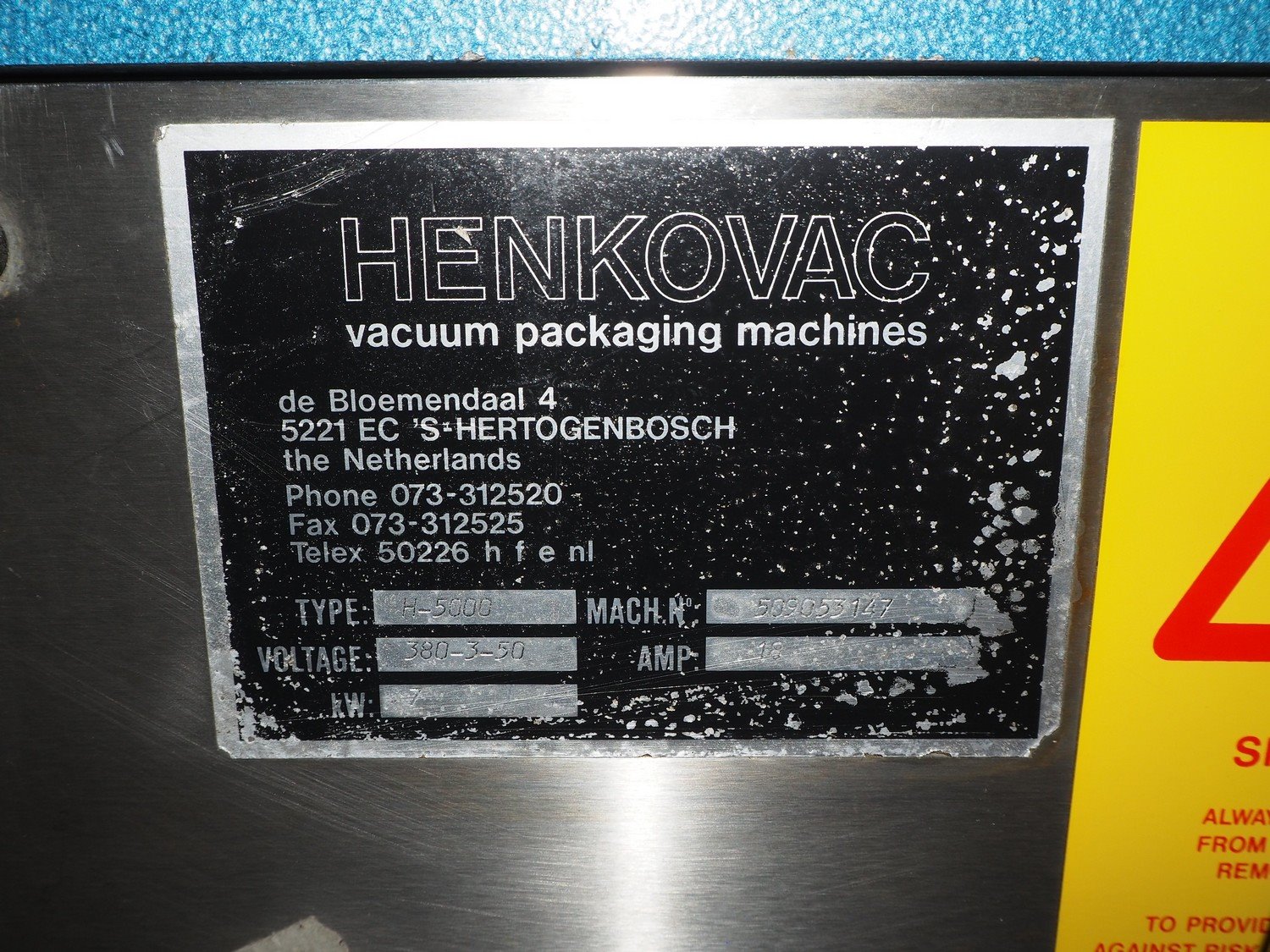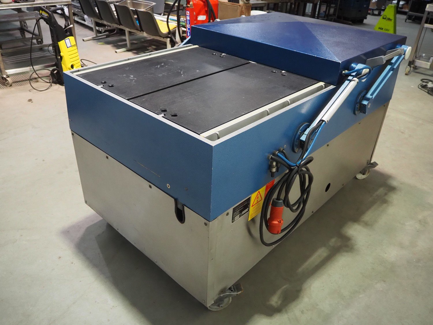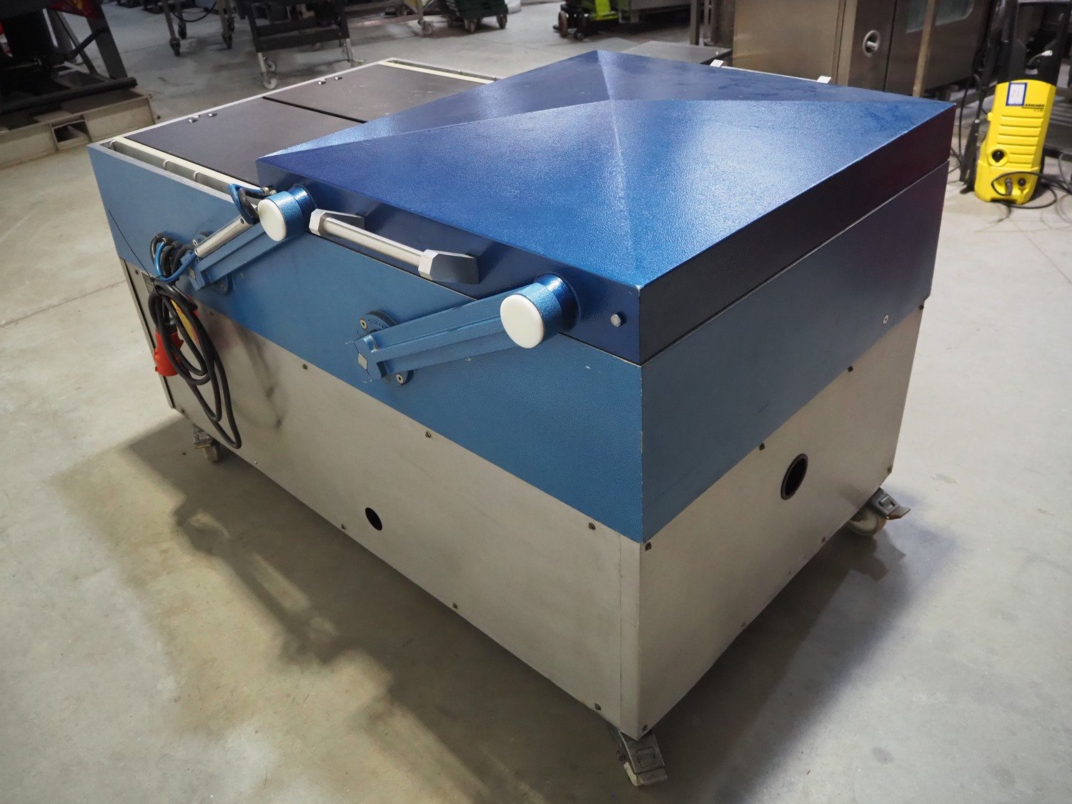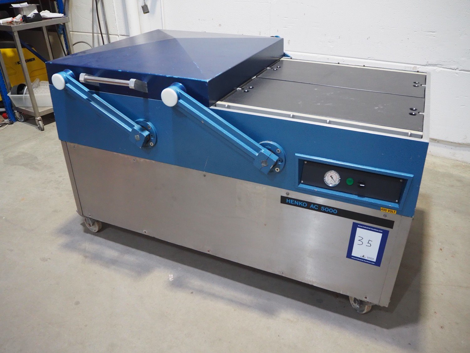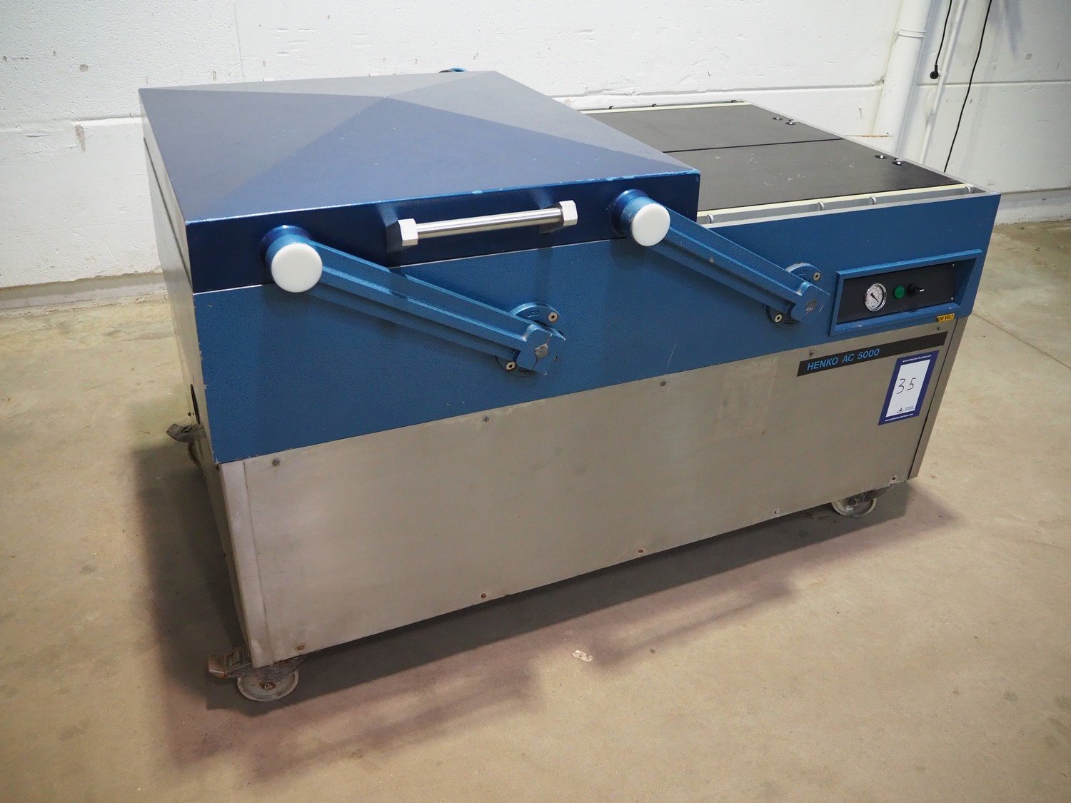 Henkovac mobile double chamber vacuum machine, type: H-5000, machine number: 509053147, 380 V, 3 Ph, 50 Hz, 18 A, seal length: (4x) 825 mm, chamber dimensions: (2x) 845 mm x 820 mm, Busch vacuum pump, type: RA 0250 D 5Z1, capacity: 250 m³ per hour, total dimensions: 1790 mm x 1150 mm x 1100 mm. Kavel locatie: Beukenhofstraat 77A, 8570 Anzegem, België