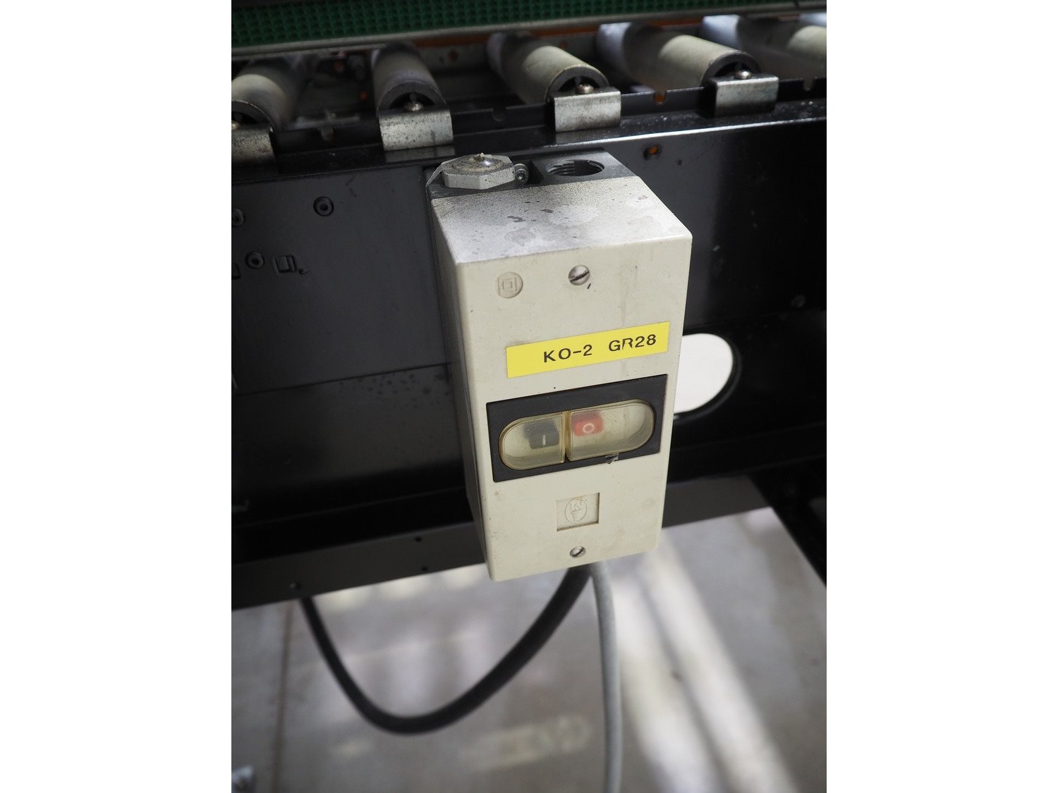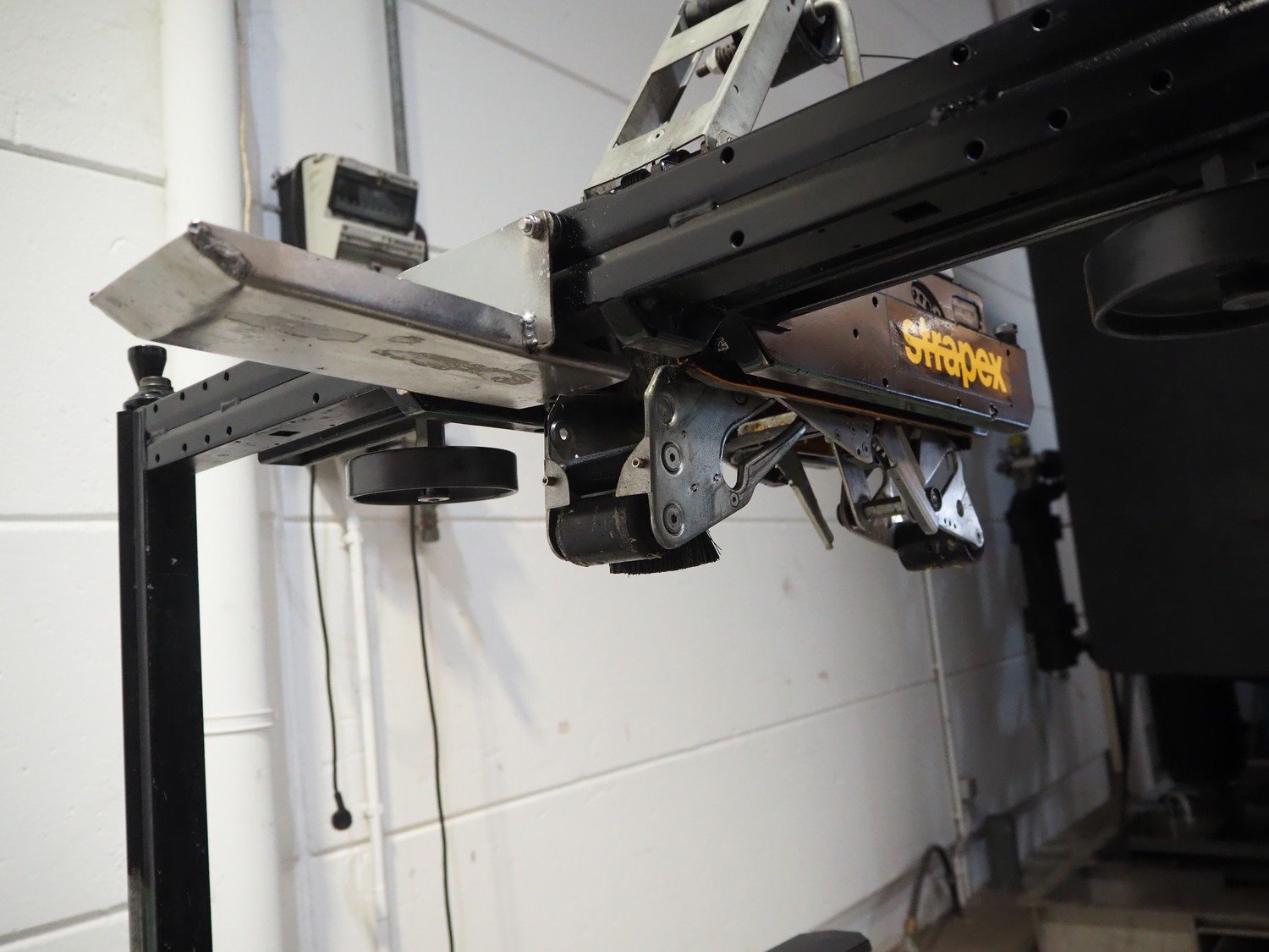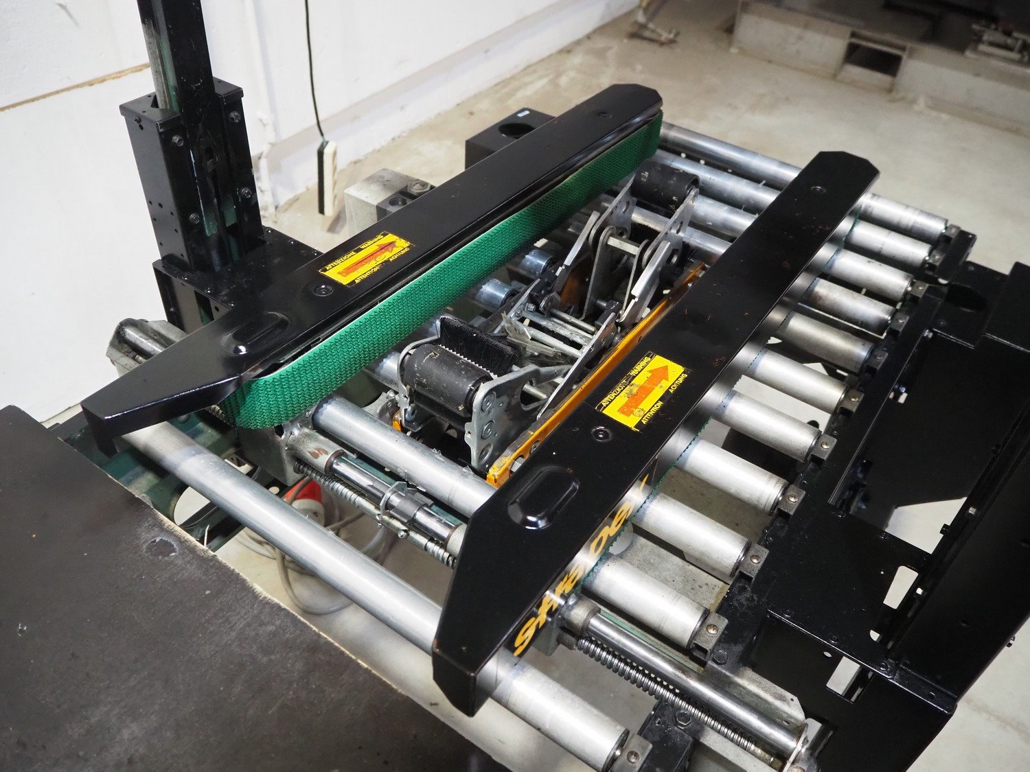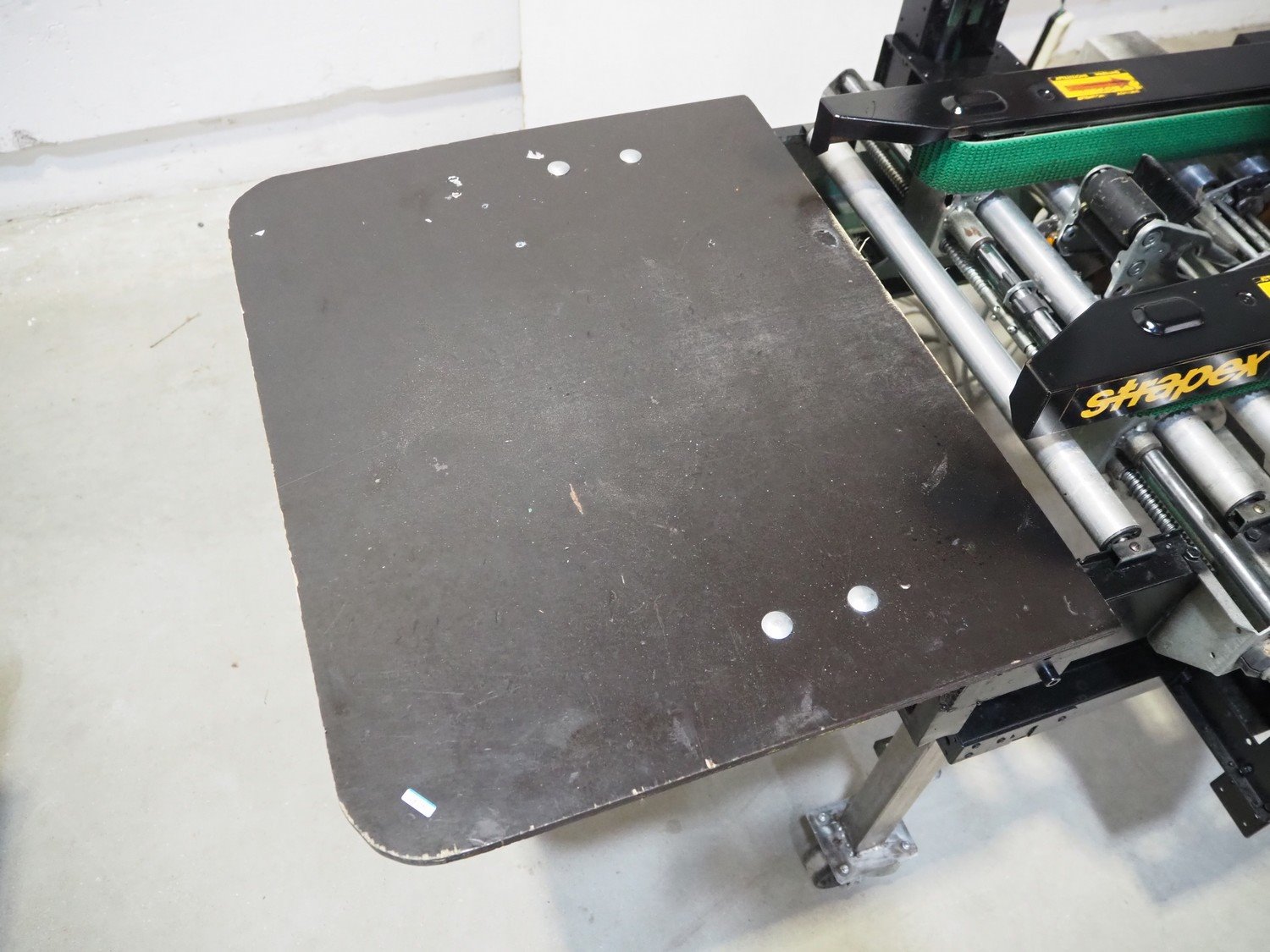 Strapex mobile box closing machine with top and bottom taper, type: GM-50, 380 V, 0.8 A, s/s rollers, roller width: 500 mm, total dimensions: 1400 mm x 850 mm x 1600 mm. Kavel locatie: Beukenhofstraat 77A, 8570 Anzegem, België