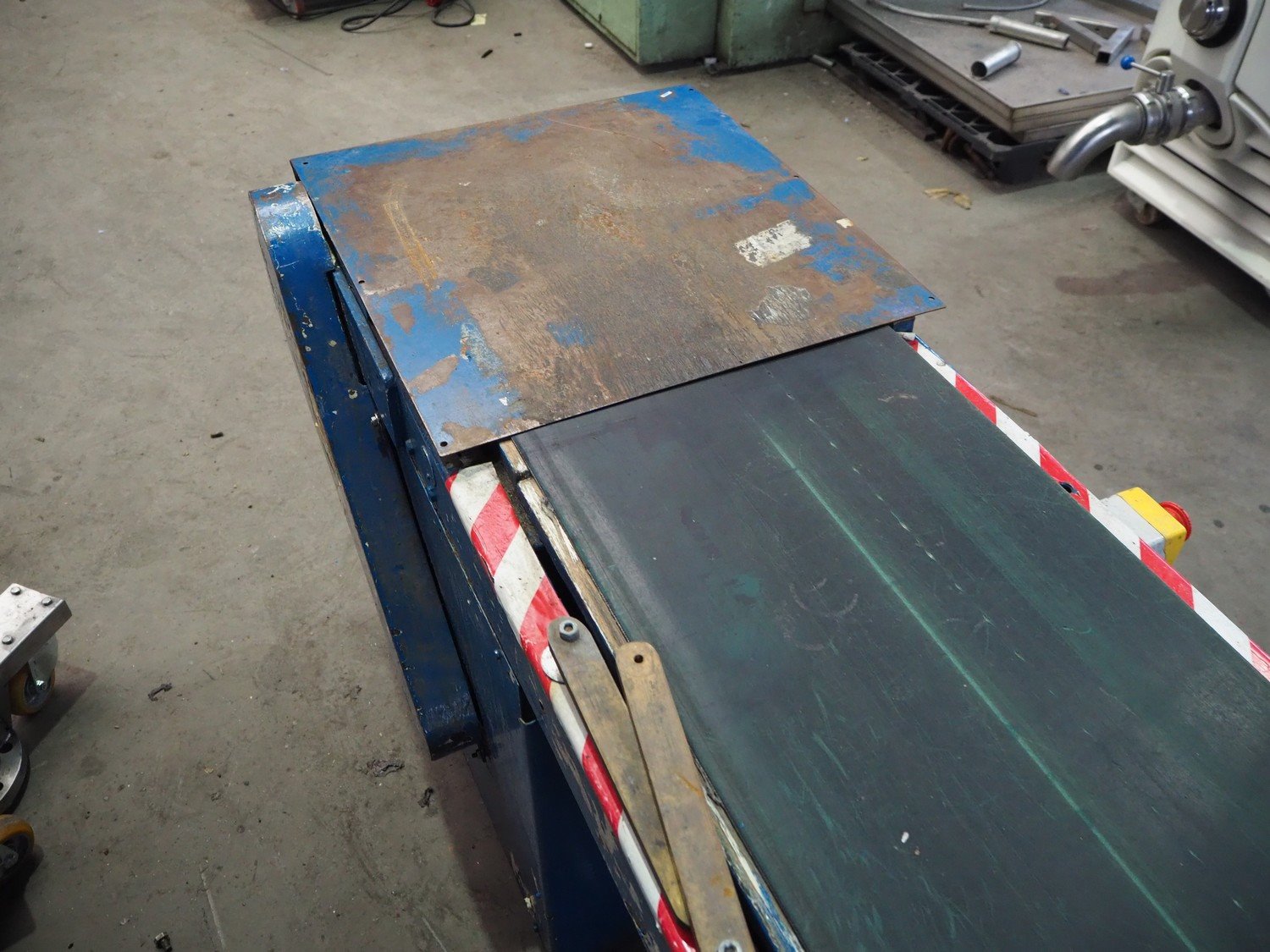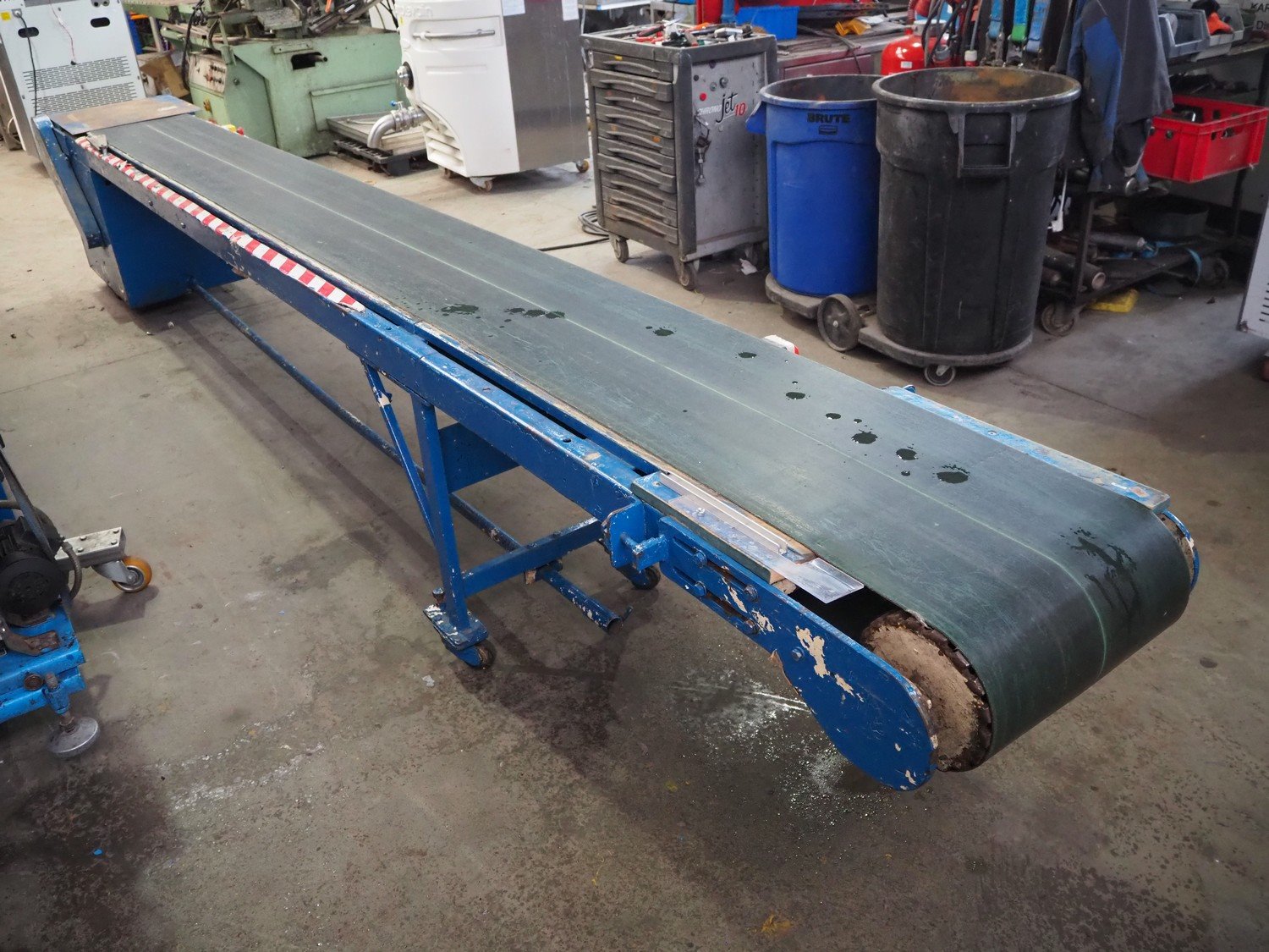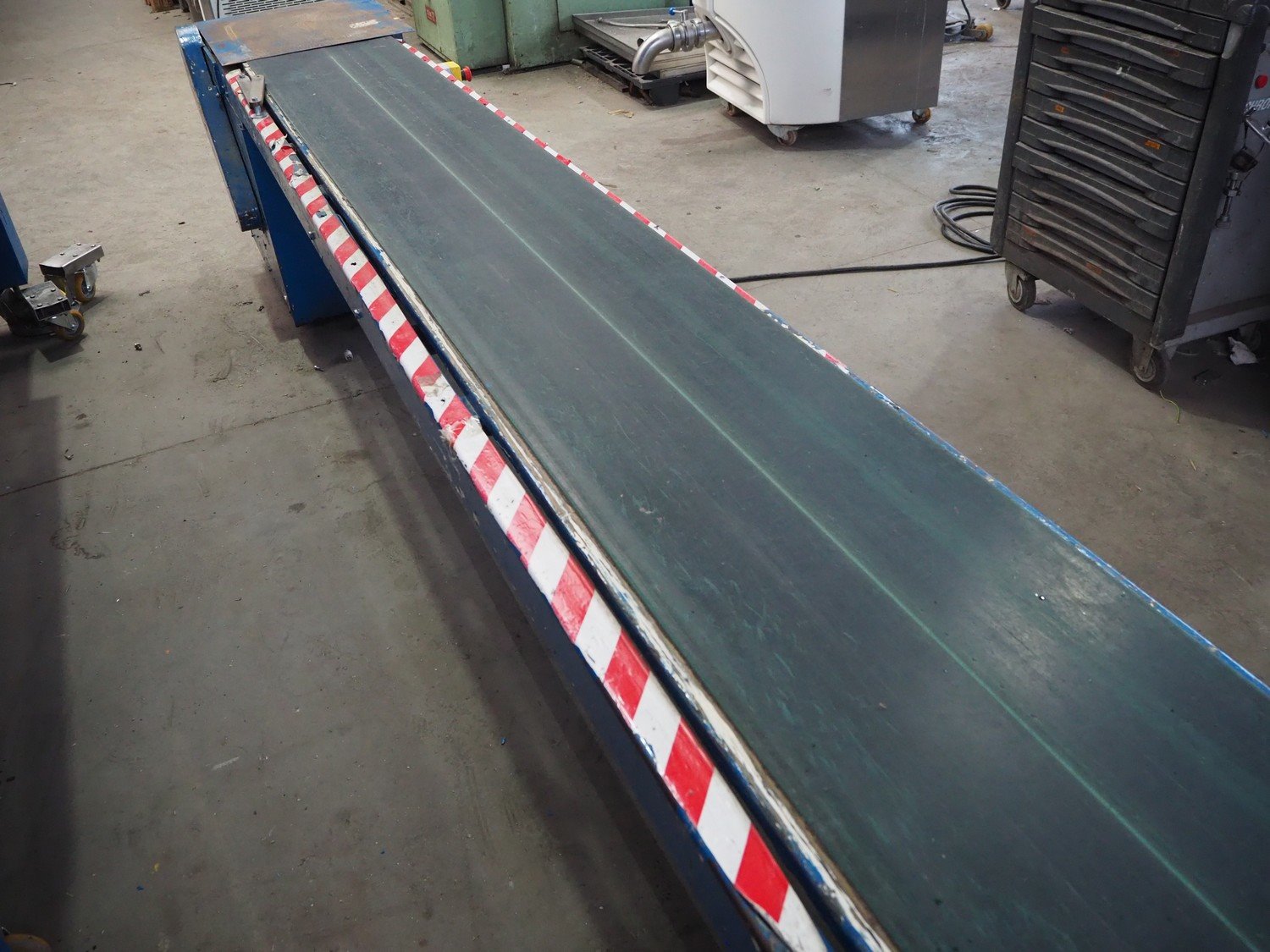 Van Riet mobile transport belt, number: 6247, year of construction: 1961, plastic belt, belt width: 400 mm, total dimensions: 5000 mm x 670 mm x 850 mm. Kavel locatie: Beukenhofstraat 77A, 8570 Anzegem, België