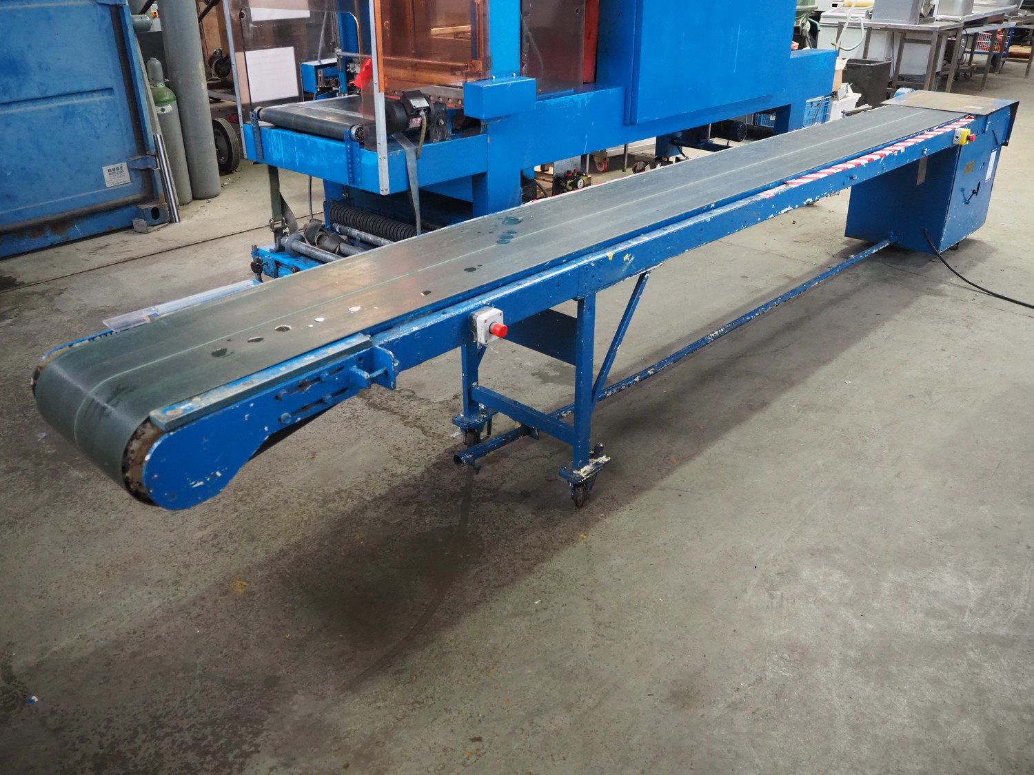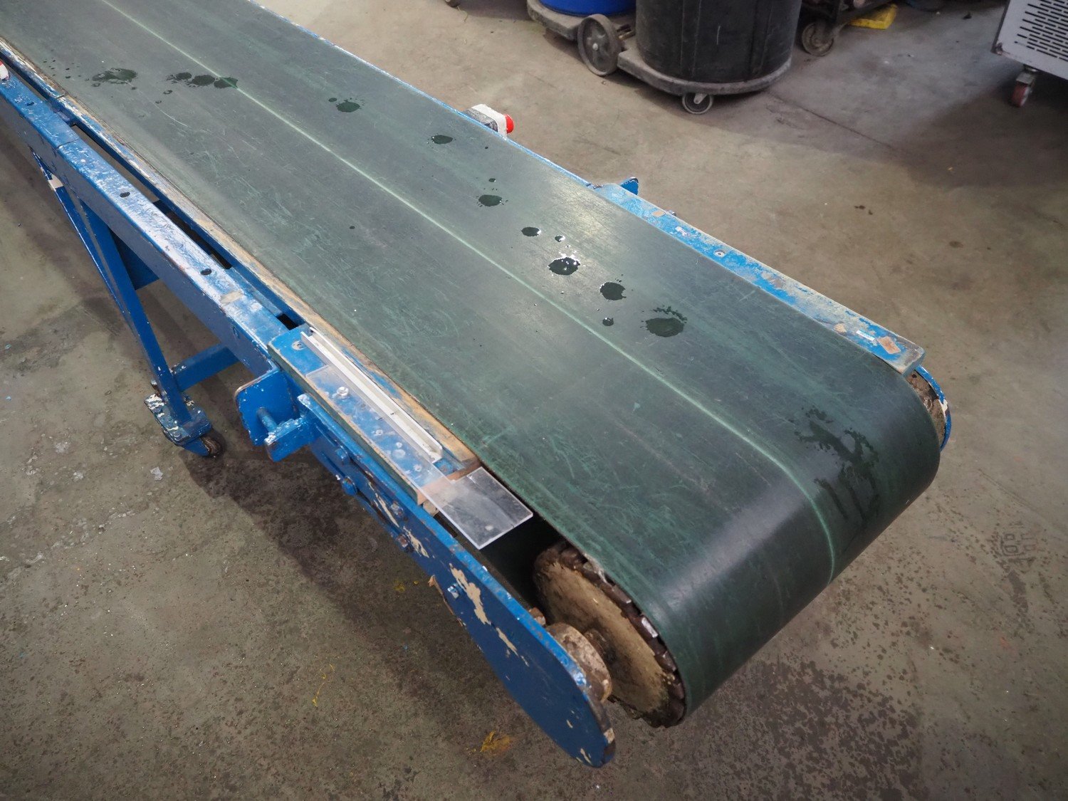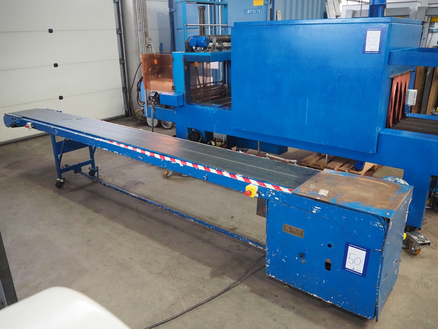 Van Riet mobile transport belt, number: 6247, year of construction: 1961, plastic belt, belt width: 400 mm, total dimensions: 5000 mm x 670 mm x 850 mm. Kavel locatie: Beukenhofstraat 77A, 8570 Anzegem, België