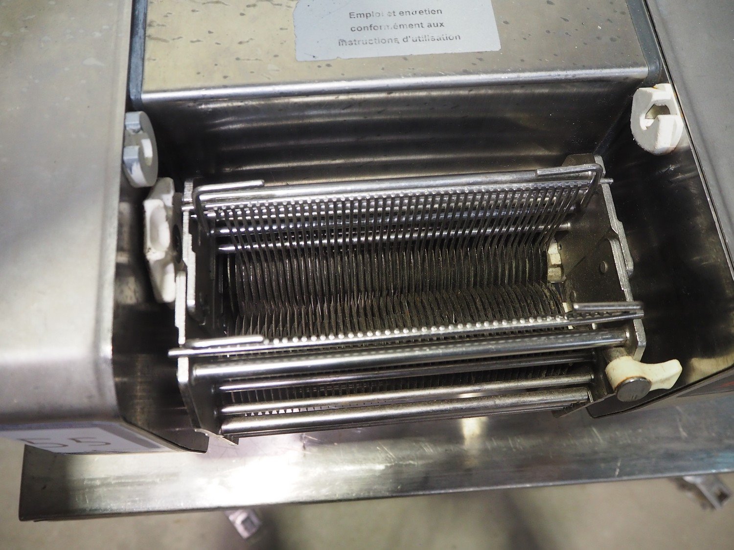 Bizerba tenderizer, model: S 111 PLUS, number: 11049185, year of construction: 2014, 230 V, 1 Ph, 50 Hz, 2.7 A, working width: 190 mm x 30 mm, distance between knifes: 4 mm, total dimensions: 400 mm x 350 mm x 460 mm. Kavel locatie: Beukenhofstraat 77A, 8570 Anzegem, België