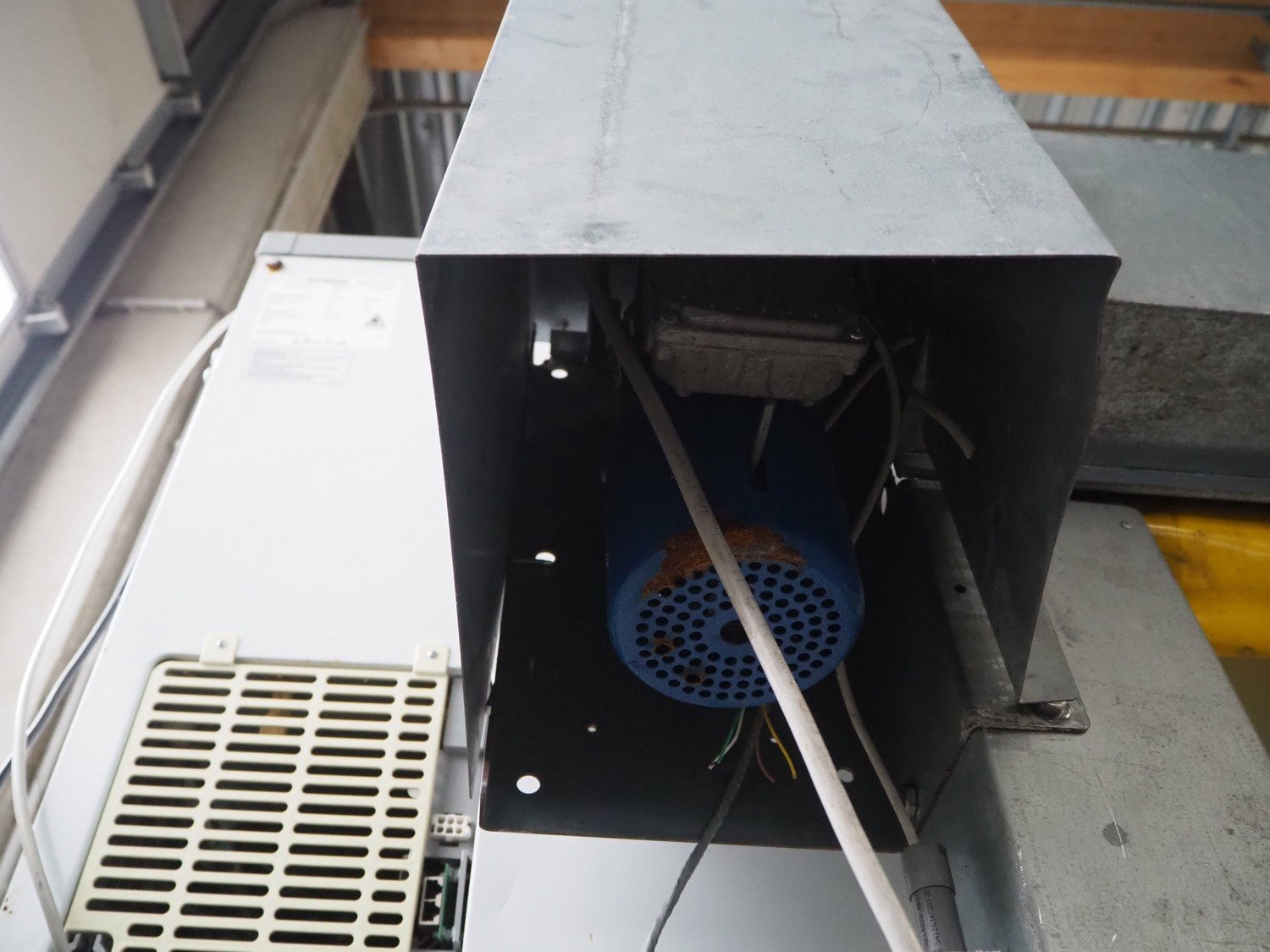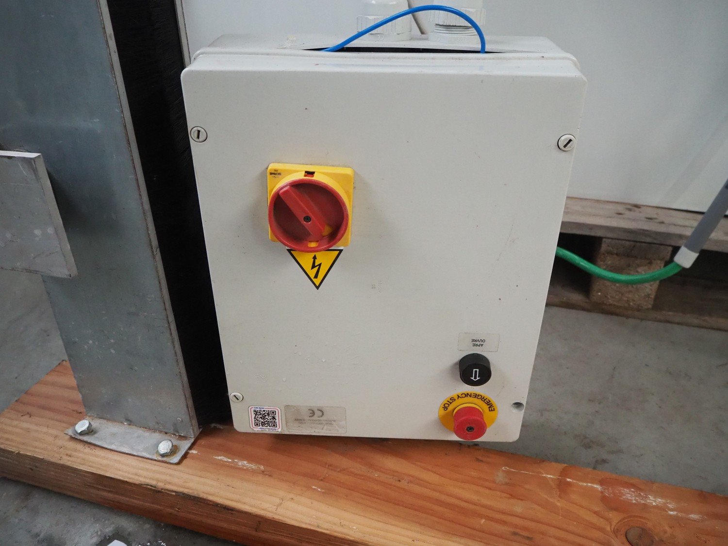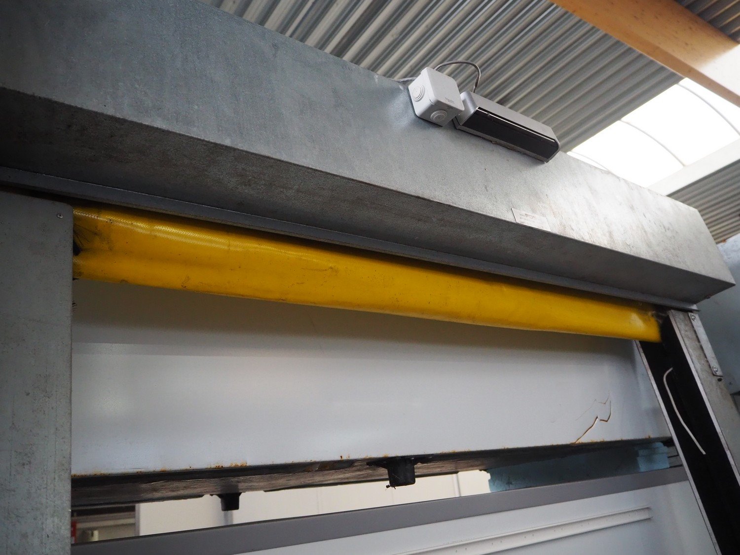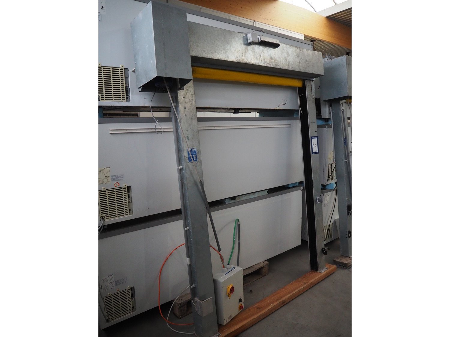 OCM electric shutter door, serial number: 5158, year of construction: 2012, door dimensions: 2050 mm x 1450 mm, total dimensions: 2050 mm x 450 mm x 2450 mm. Kavel locatie: Beukenhofstraat 77A, 8570 Anzegem, België