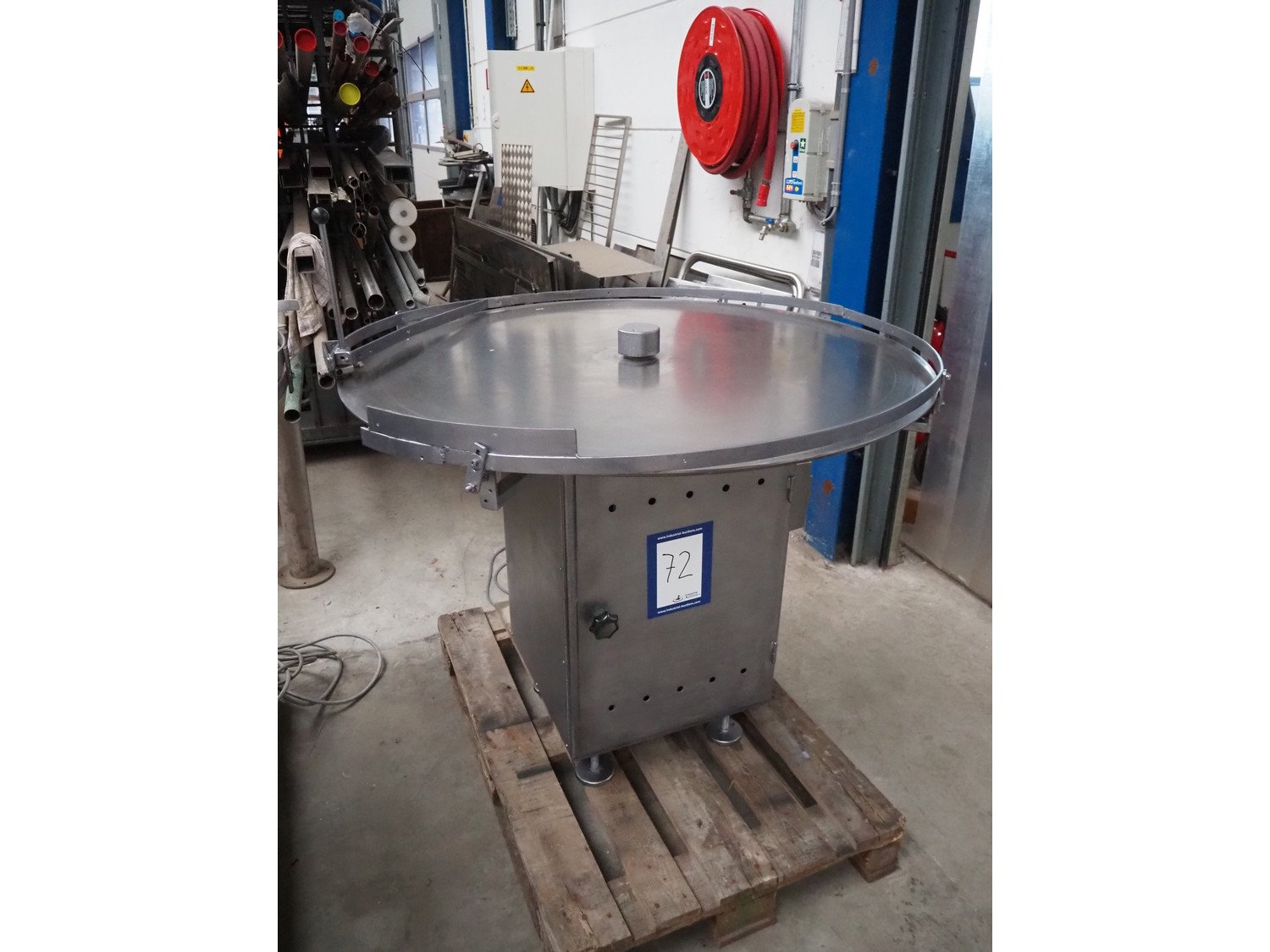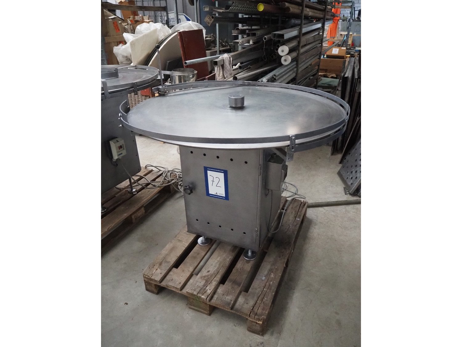 Turning table, Ø table: 1200 mm, total dimensions: 1200 mm x 1250 mm. Kavel locatie: Beukenhofstraat 77A, 8570 Anzegem, België